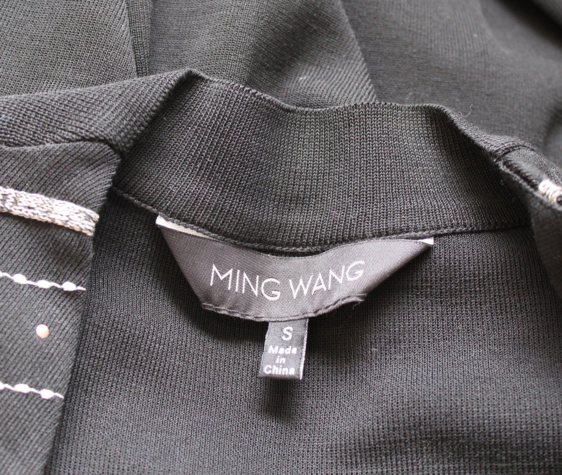 Ming Wang Black Embroidered Studded Embellished Zip Front Knit Jacket Size S