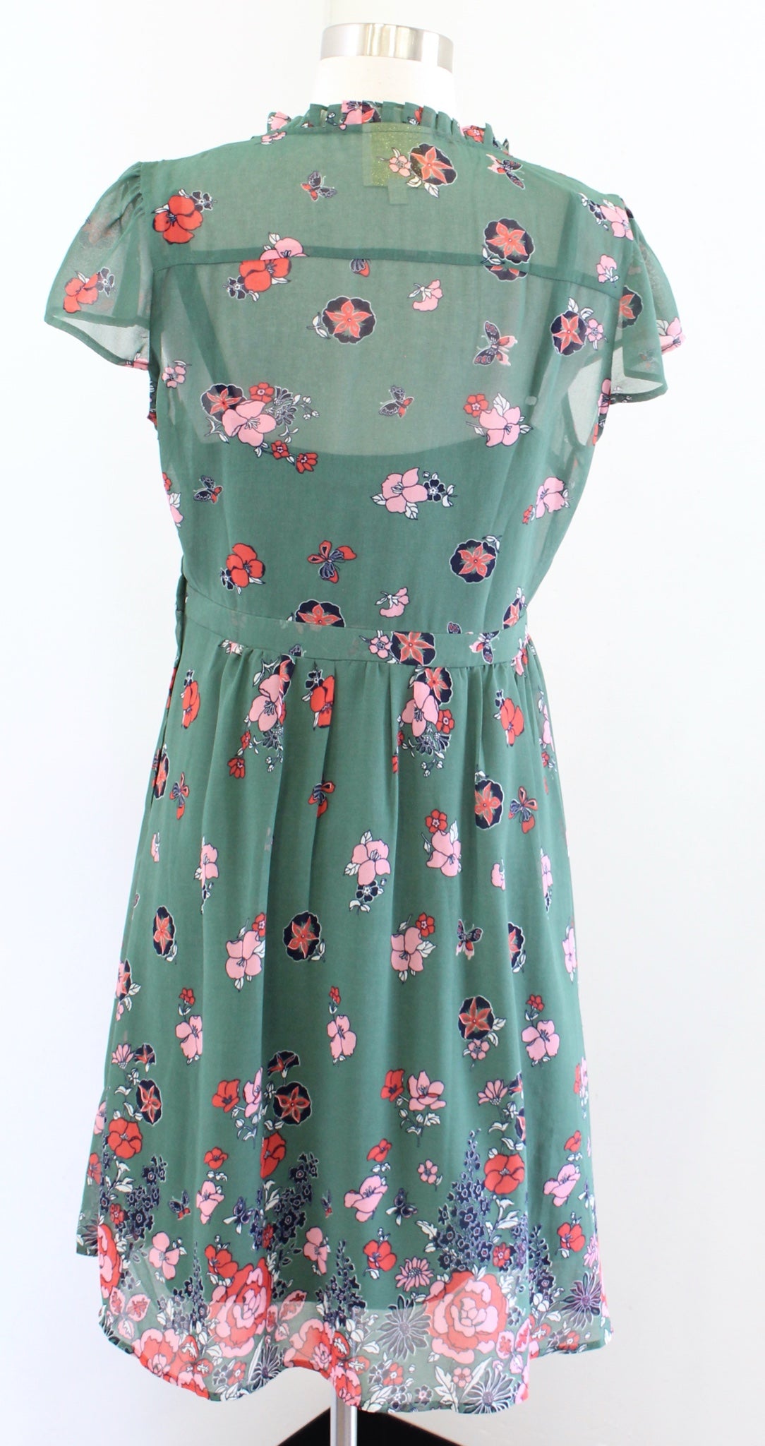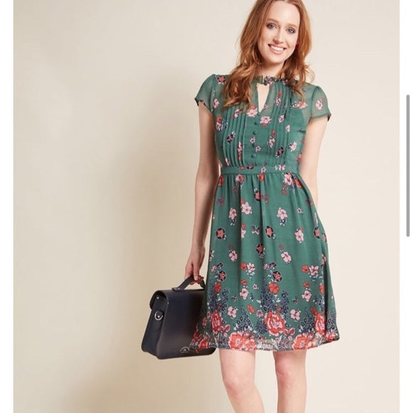 Modcloth Oh Say Can You Museum Green Butterfly Floral Print A Line Dress Size M