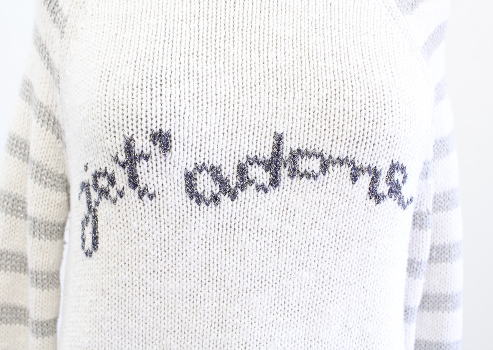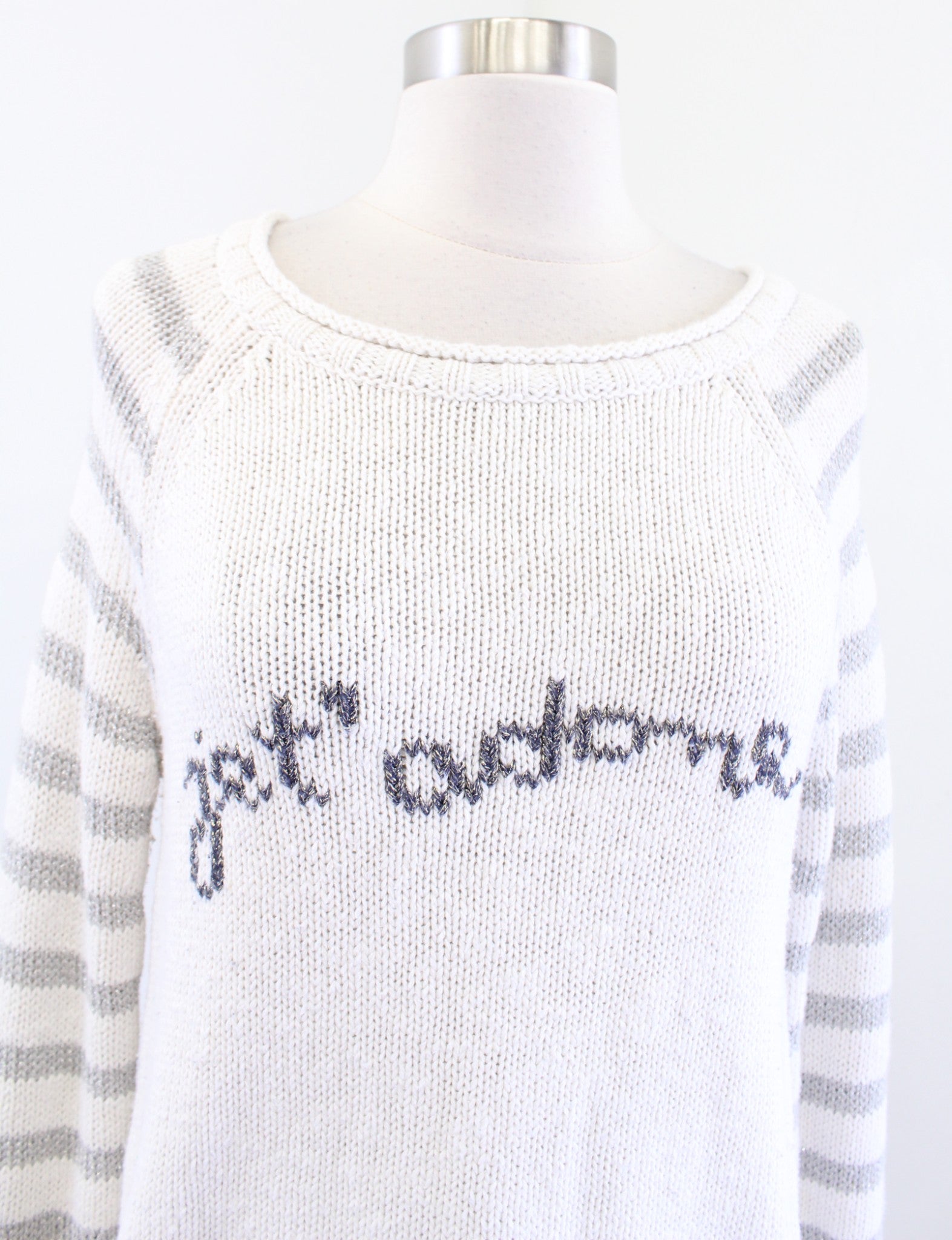 Moth Anthropologie Jet Adore Metallic Striped Pullover Sweater Size M White Gray
