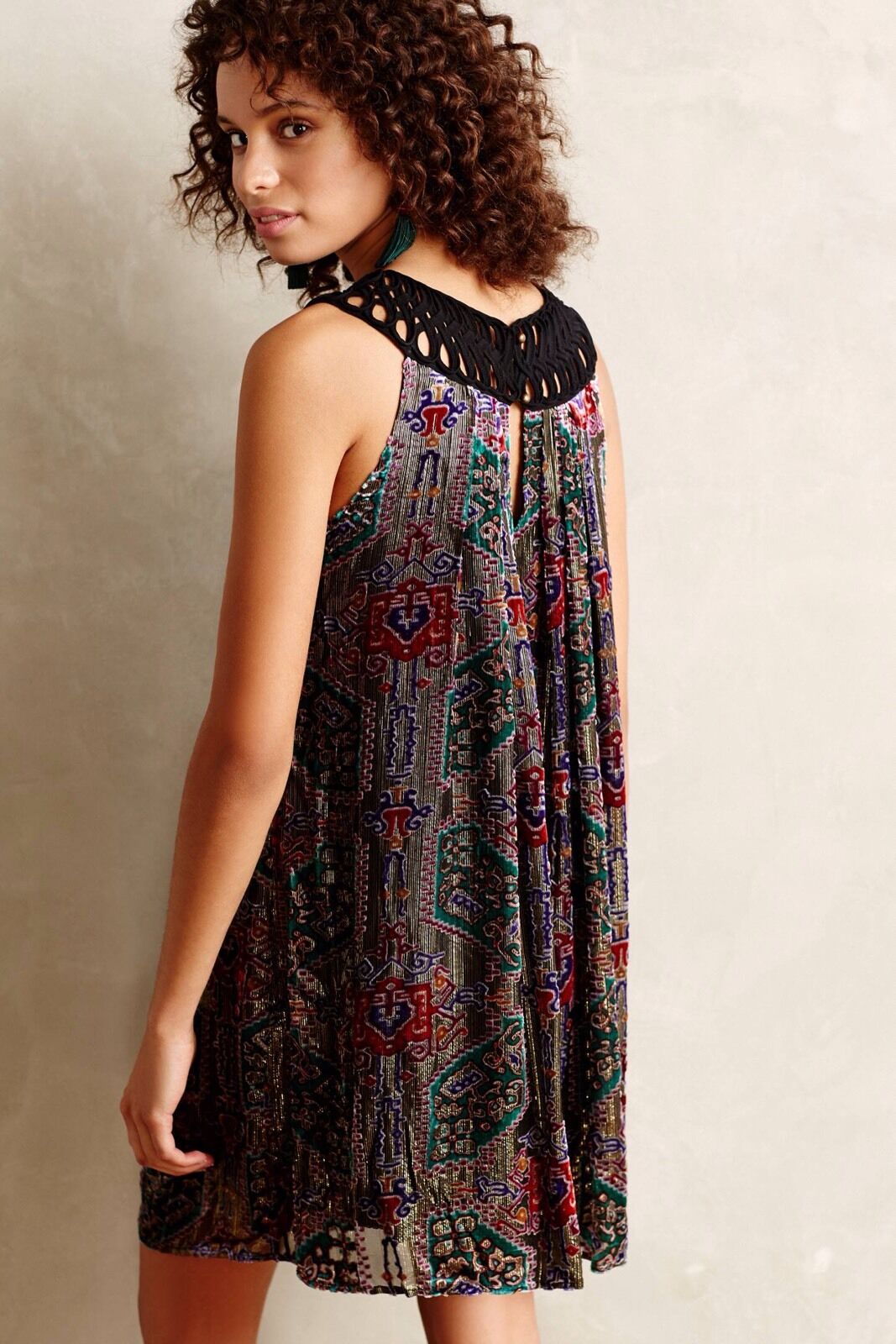 Moulinette Soeurs Anthropologie Linnea Burnout Velvet Metallic Shift Dress Sz S