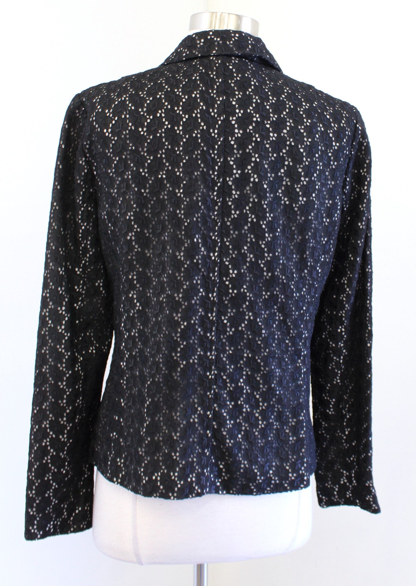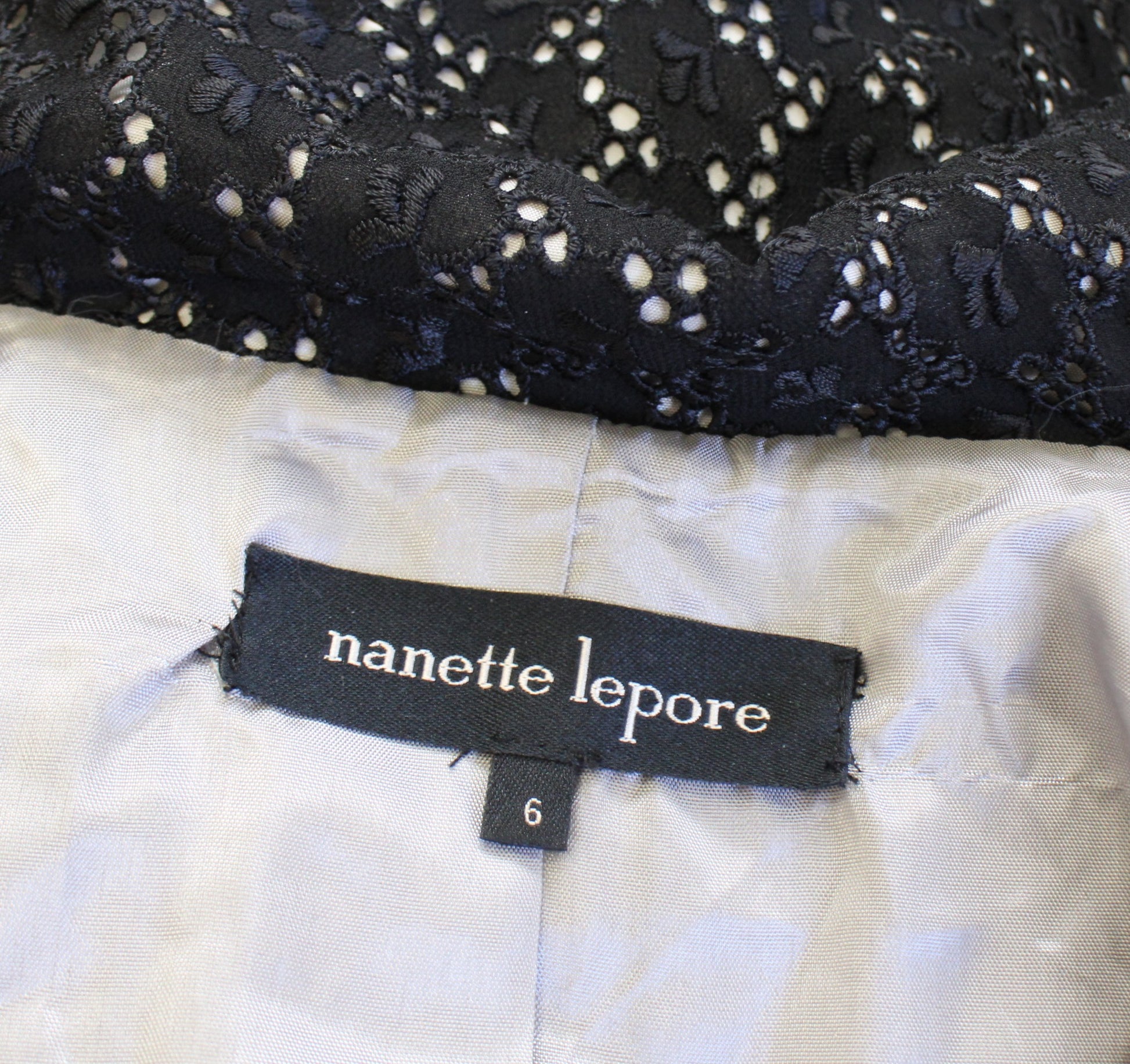 Nanette Lepore Black White Eyelet Lace Leather Trim Zip Up Moto Jacket Size 6