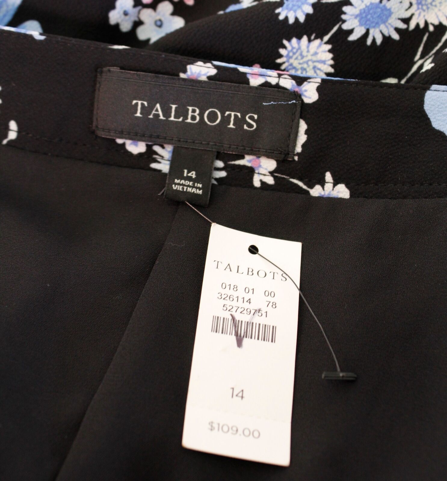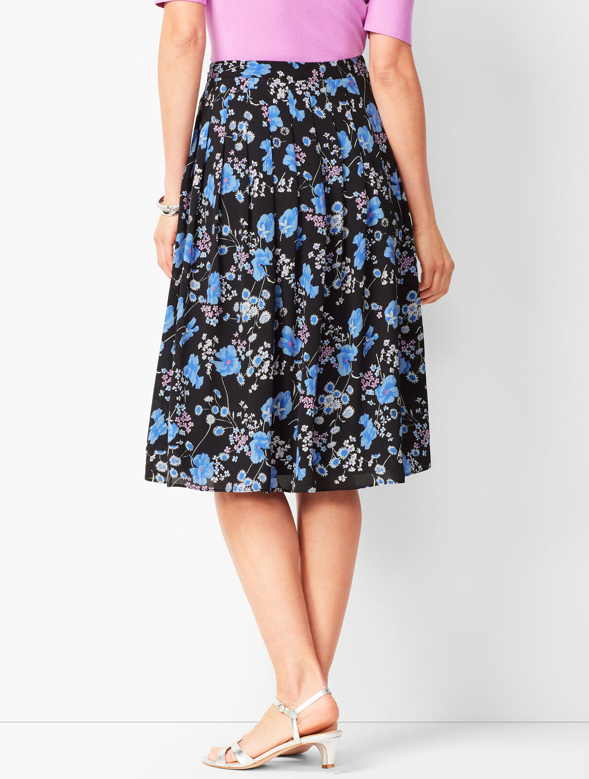 NWT $109 Talbots Pleated Wildflowers Floral Print Midi Skirt Size 14 Black Blue