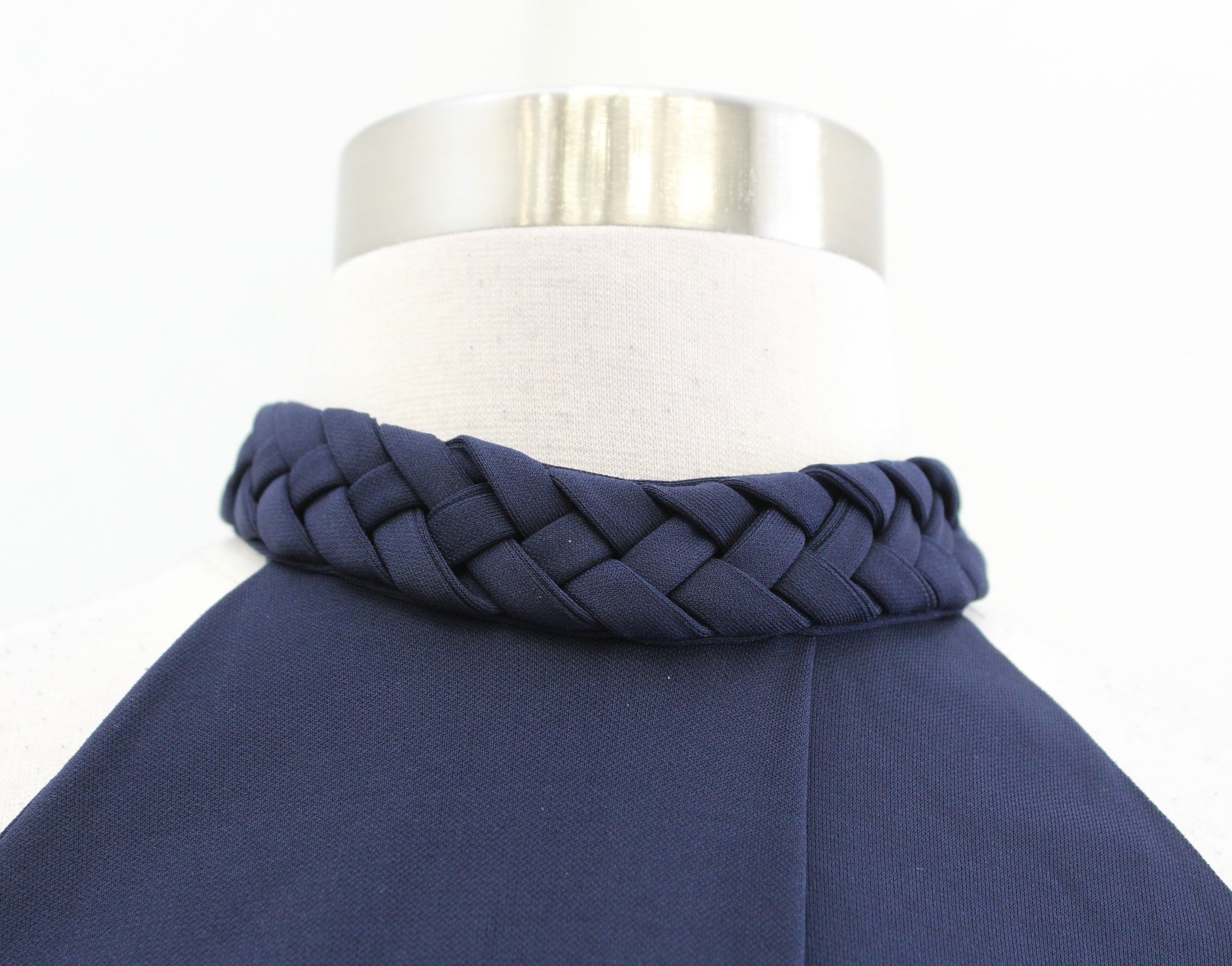 NWT $545 Halston Marie Navy Blue Halter Draped Asymmetrical Hem Jersey Dress 0