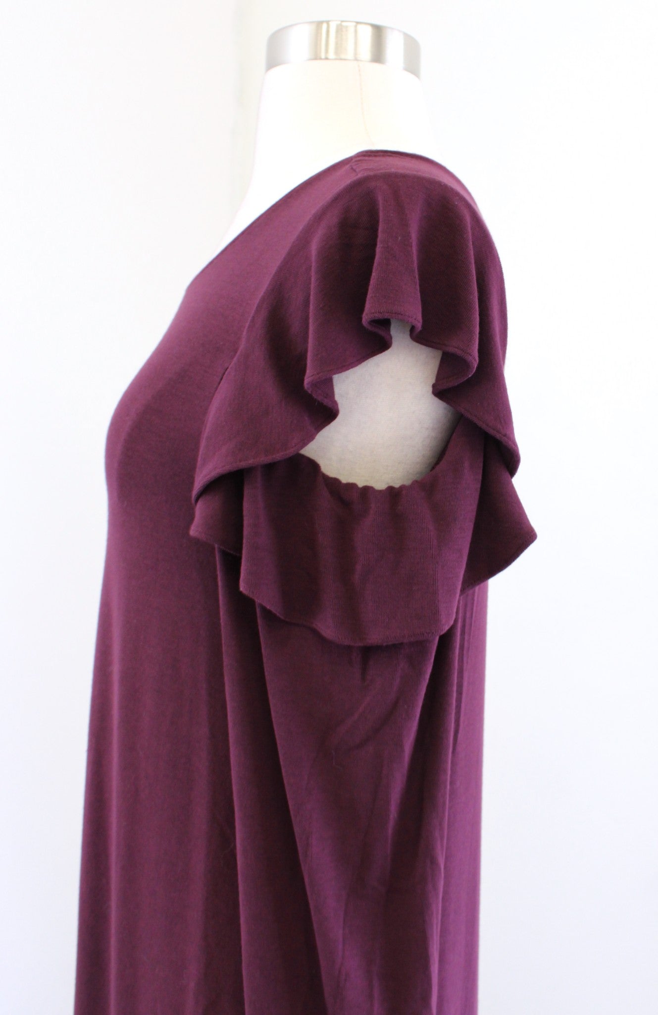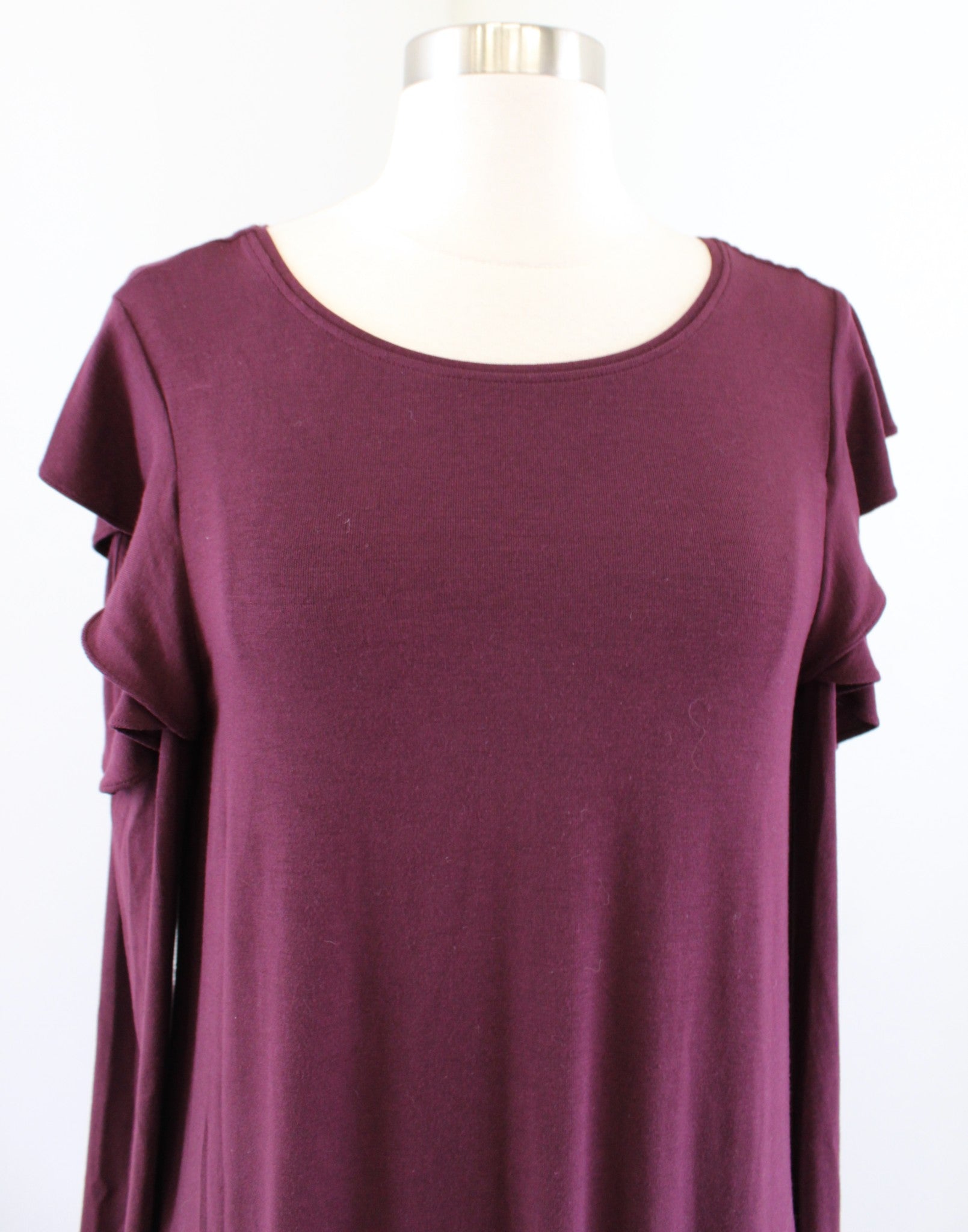 NWT $94 White House Black Market Cabernet Burgundy Ruffle Cold Shoulder Dress M