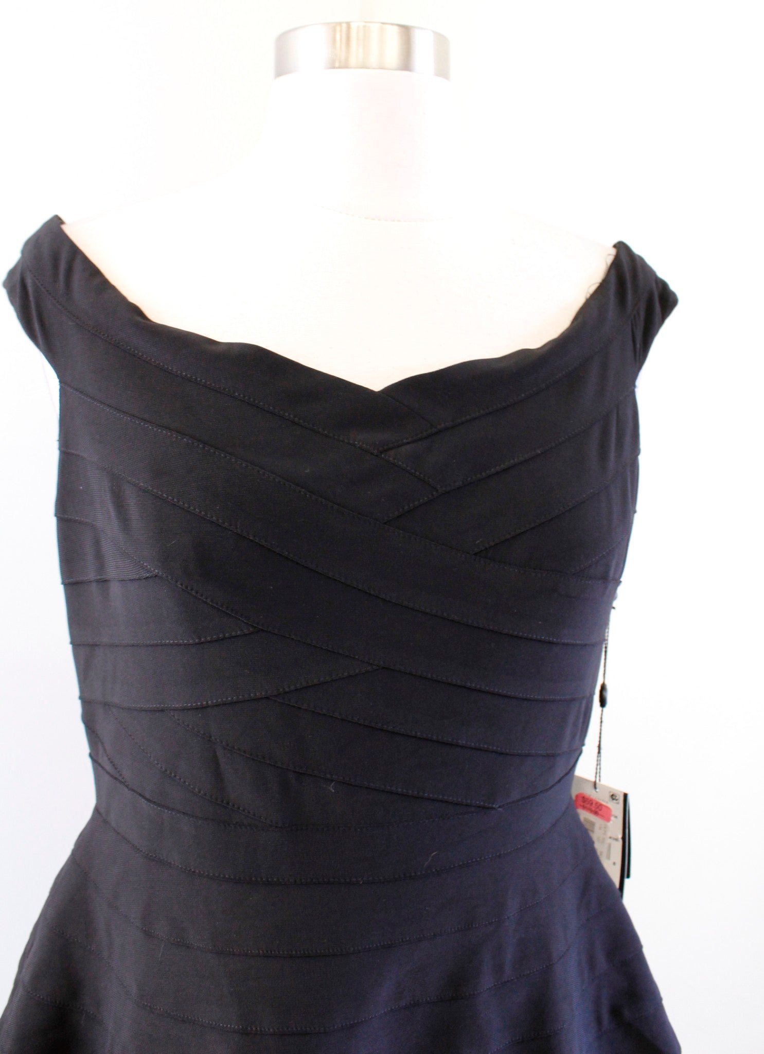 NWT Adrianna Papell Black Banded Off the Shoulder Peplum Dress Cocktail Party 6