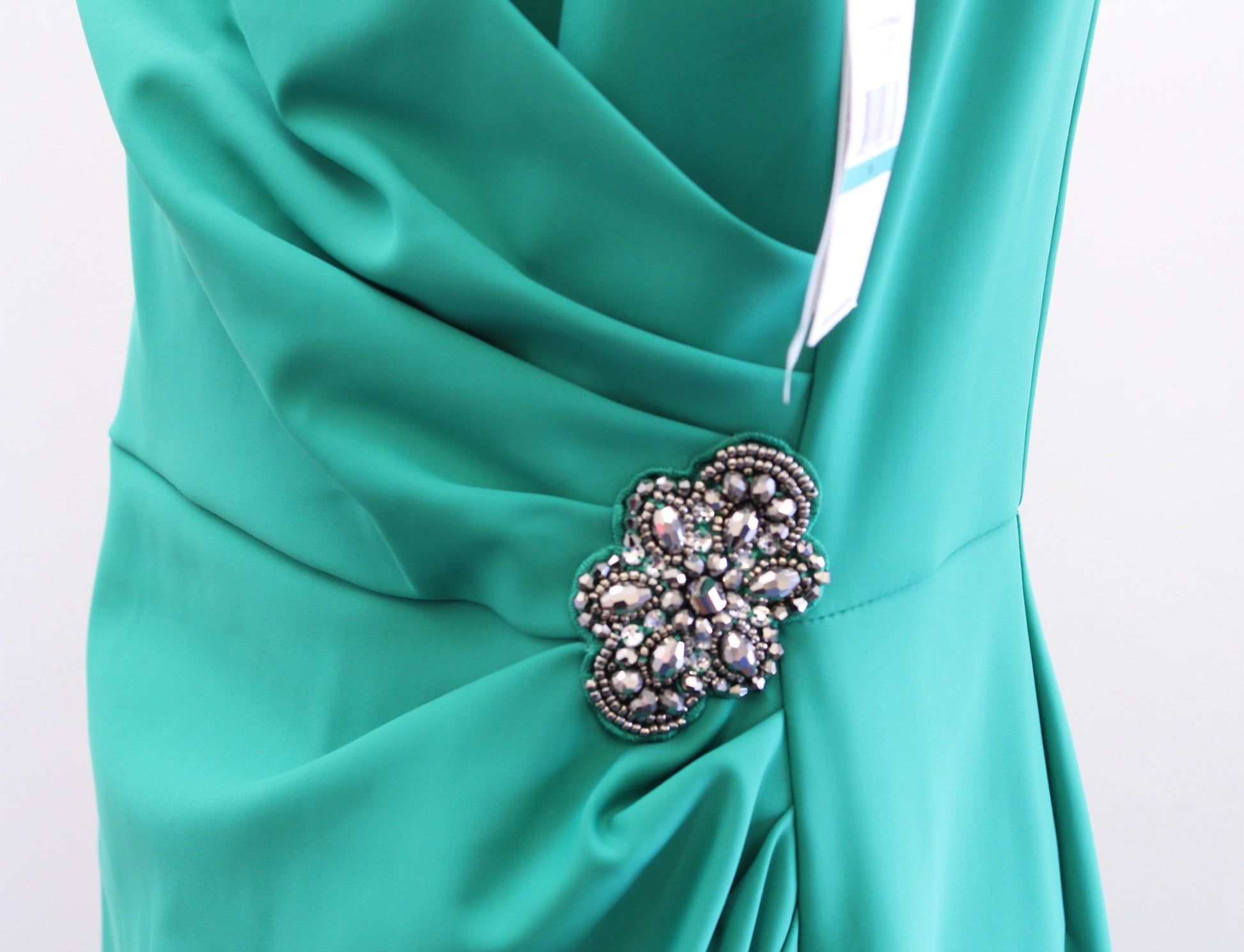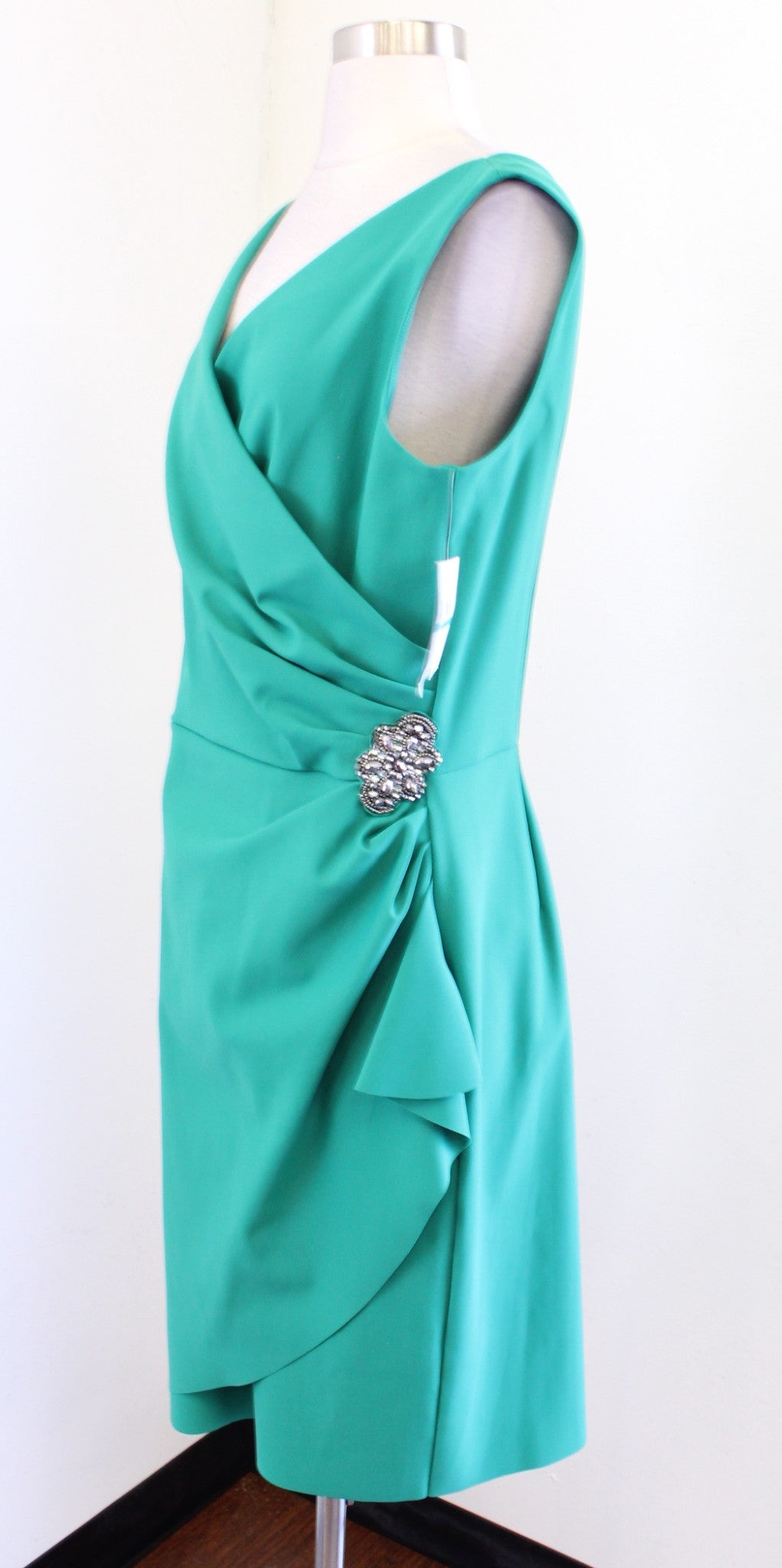 NWT Alex Evenings Jade Green Compression Ruched Ruffle Cocktail Dress Size 16