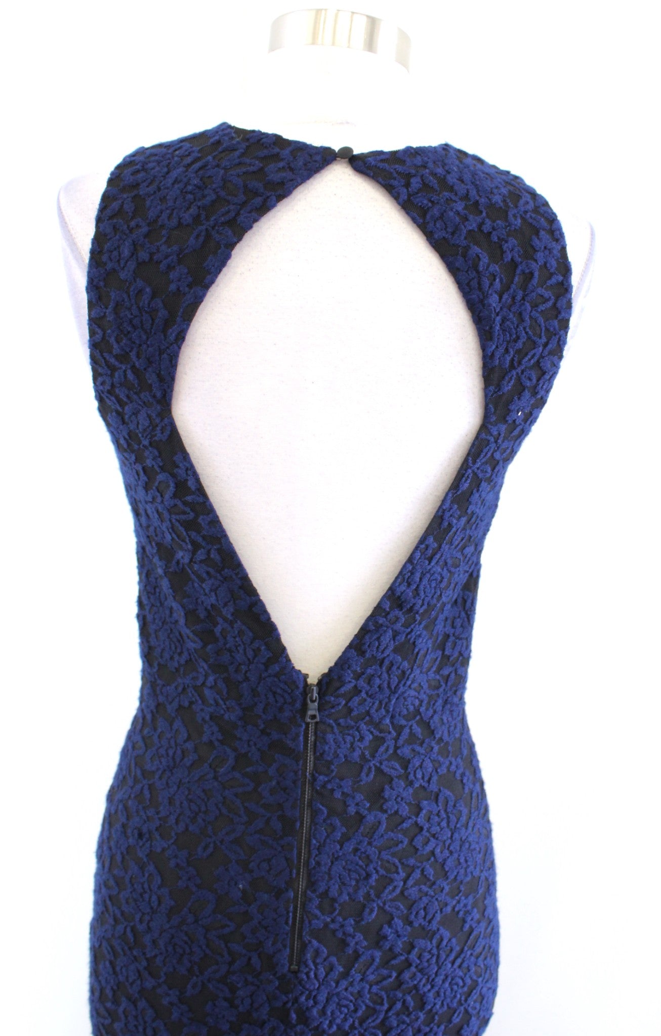 NWT Alice and Olivia Roxie Blue Black Floral Lace Maxi Dress Gown Size 6 Evening