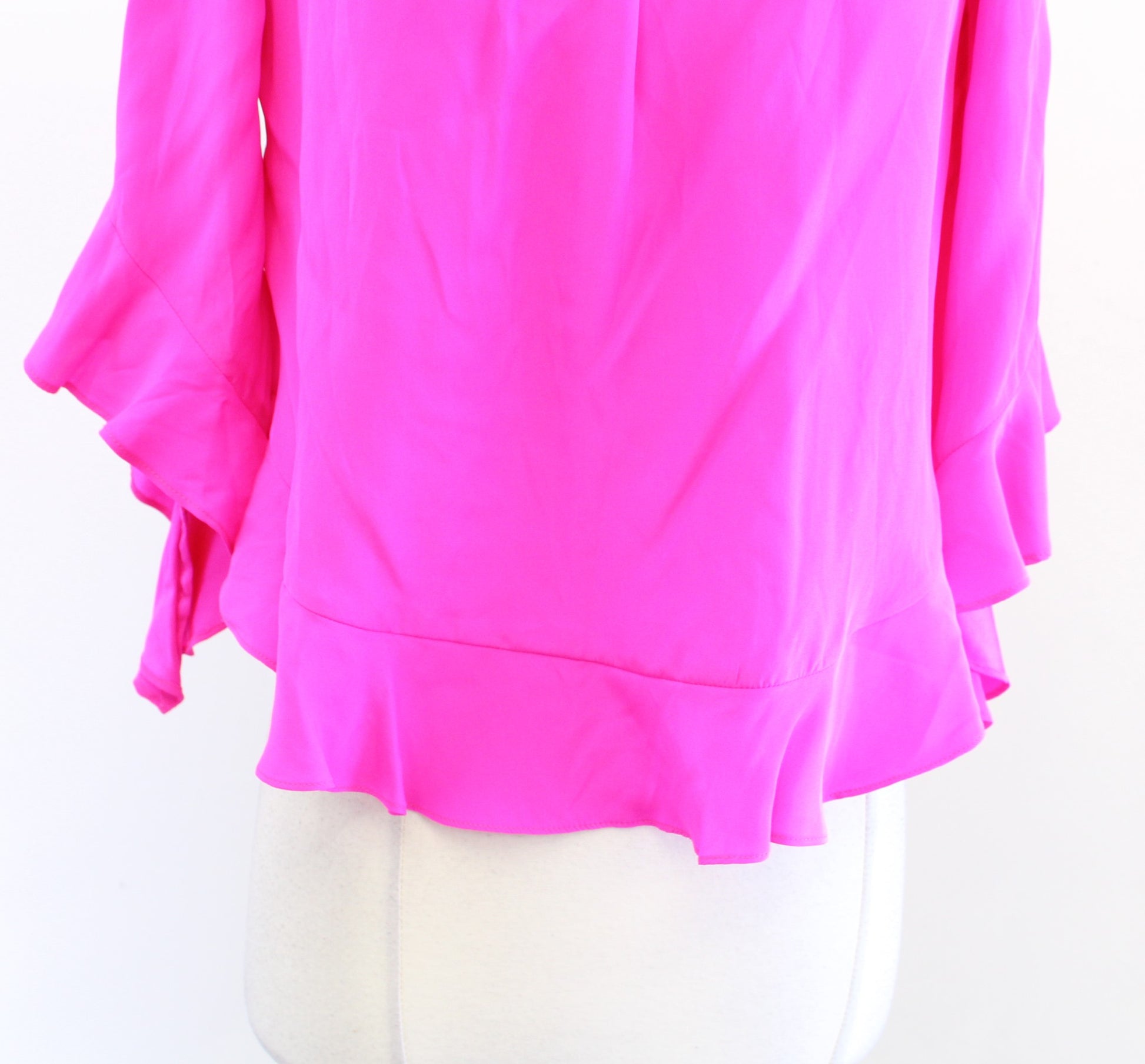 NWT Alice and Trixie Hot Pink Silk Off the Shoulder Flutter Top Blouse Size XS