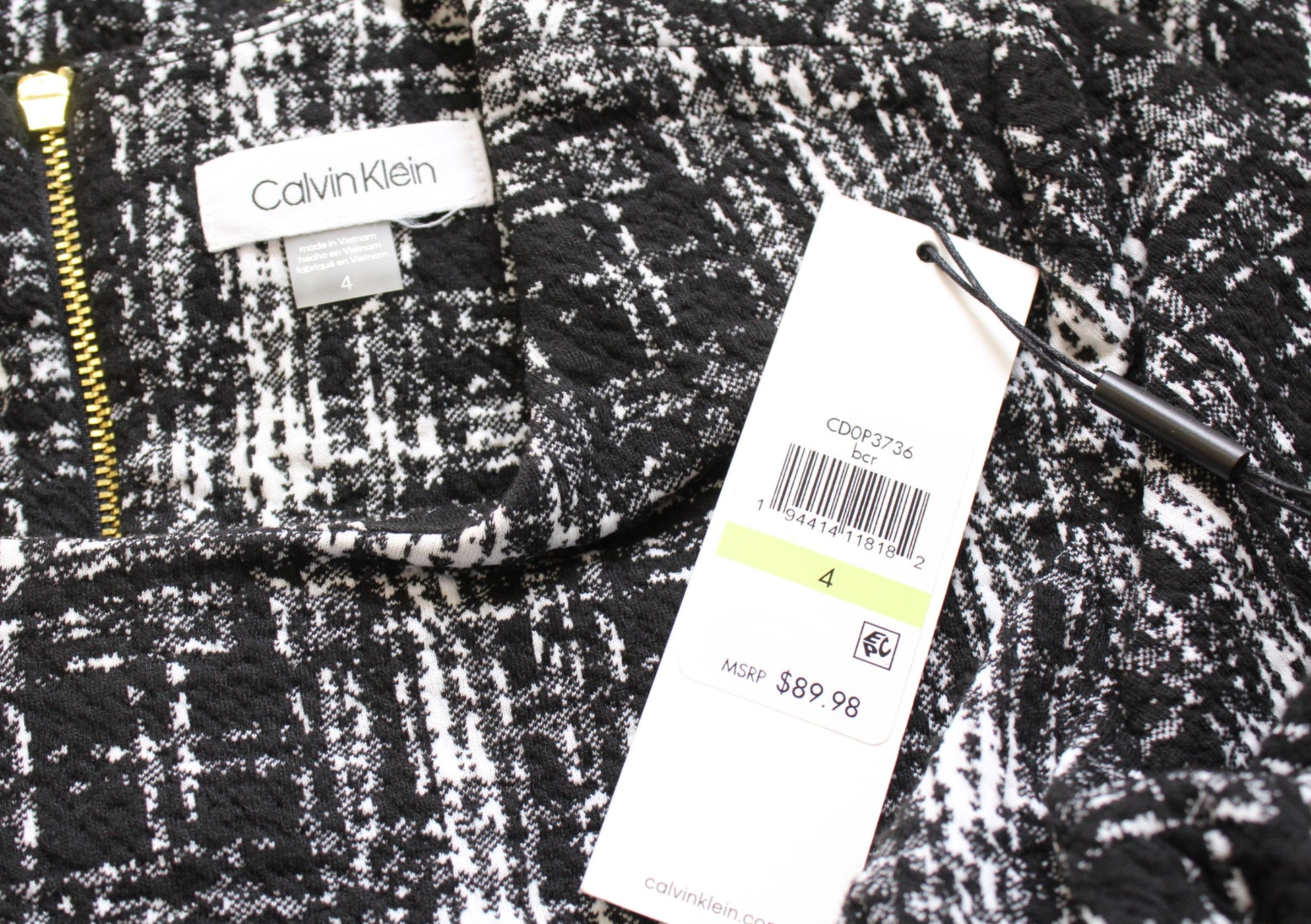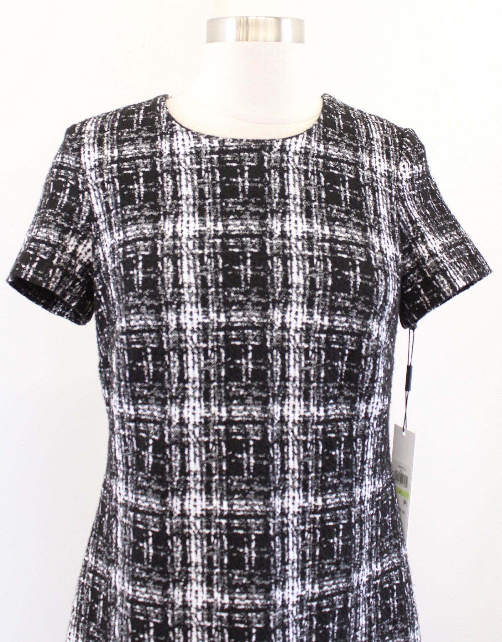 NWT Calvin Klein Black White Textured Plaid Short Sleeve Sheath Dress Size 4