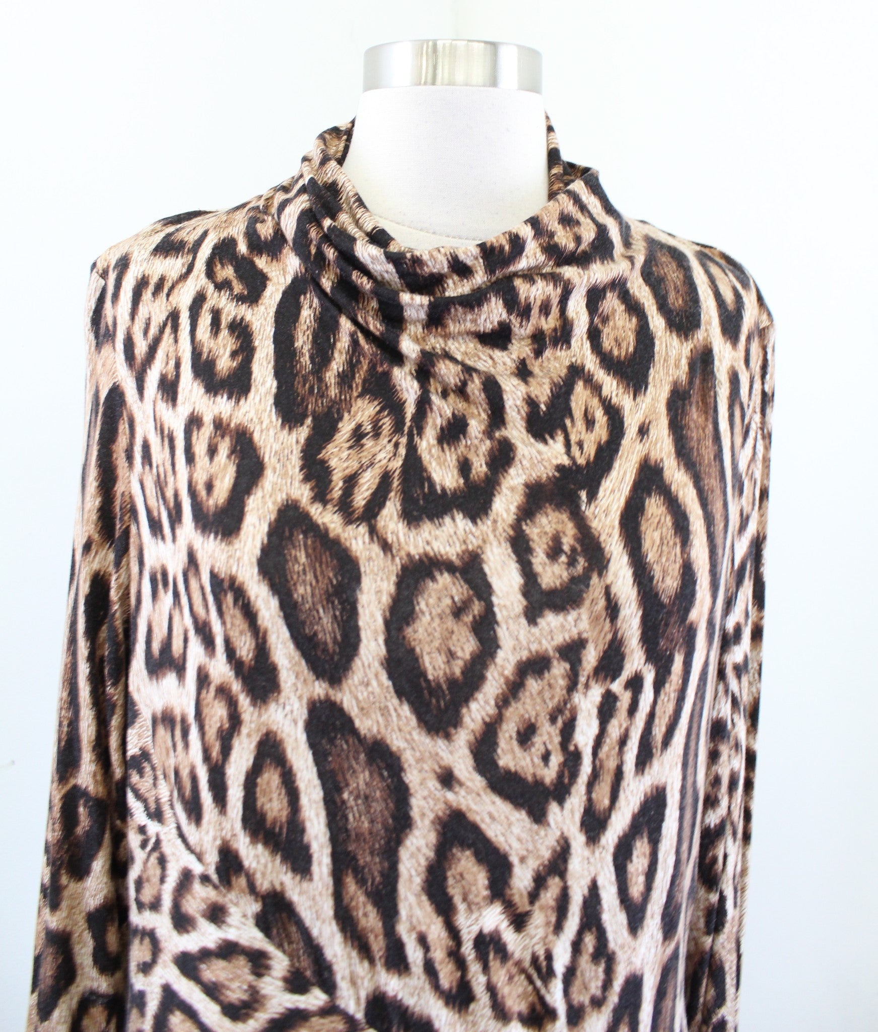 NWT Chicos Leopard Print Twist Ruched Mock Neck Long Sleeve Knit Dress Size 2