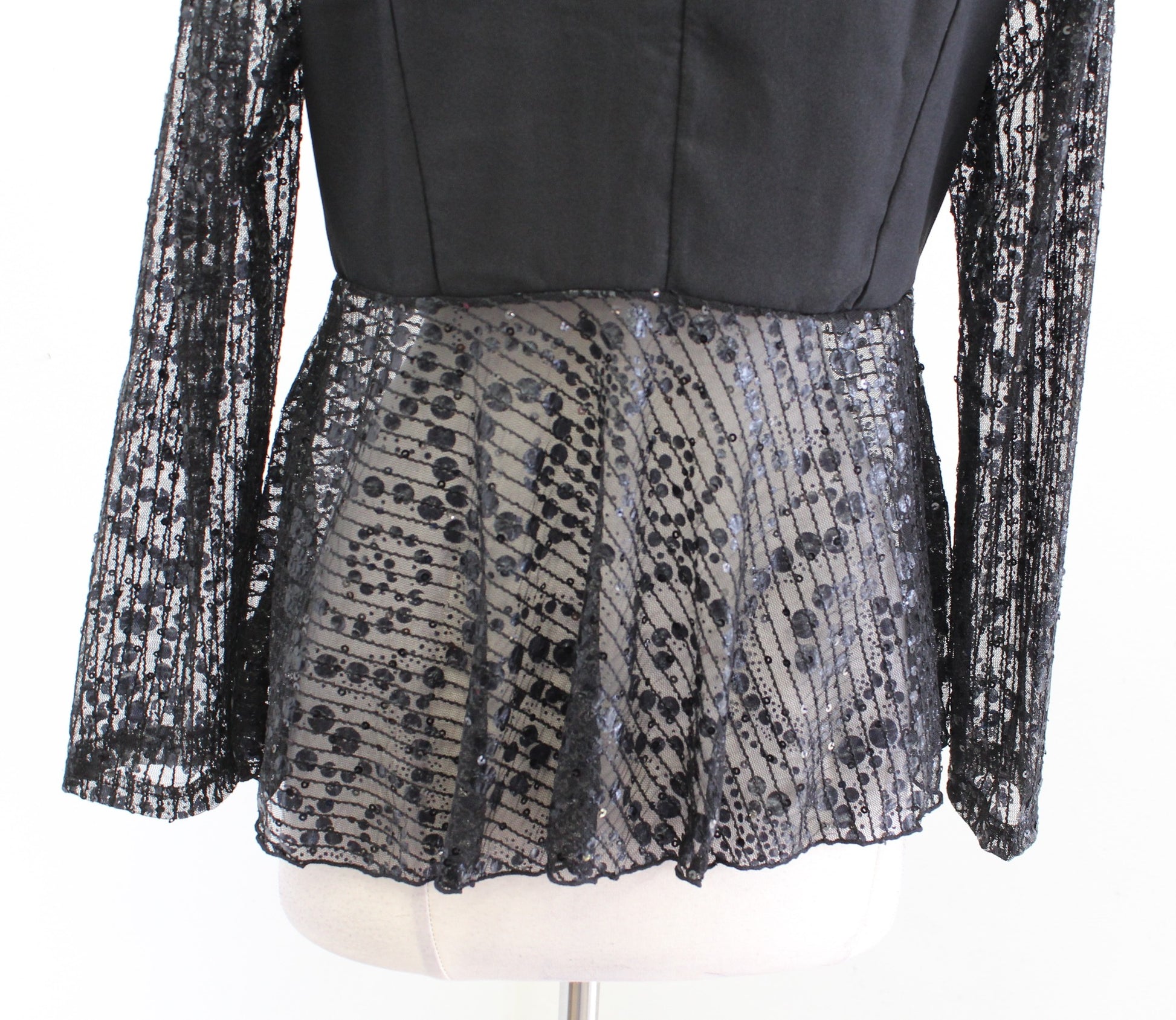 NWT Damee Inc Black Sequin Mesh Embellished Blazer Jacket Size S Tuxedo Style