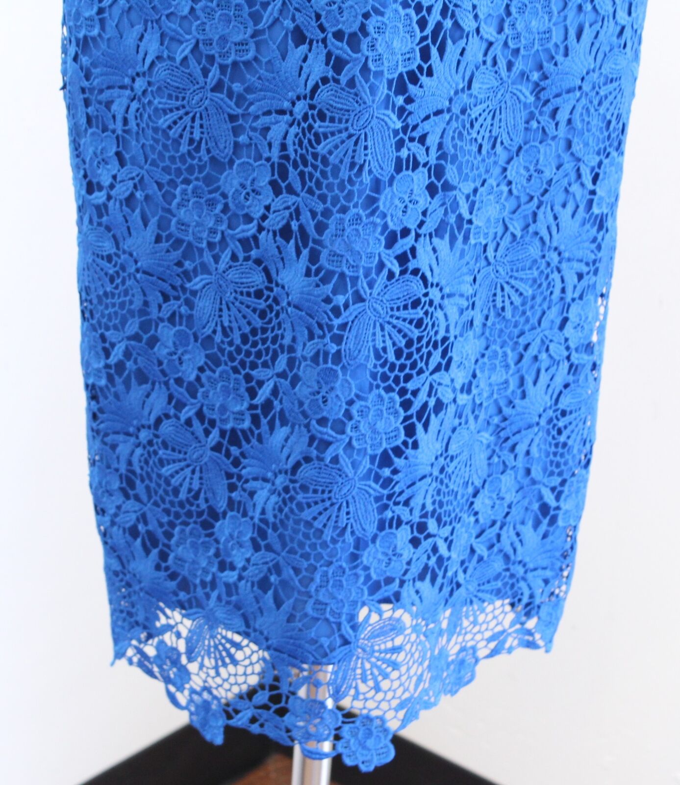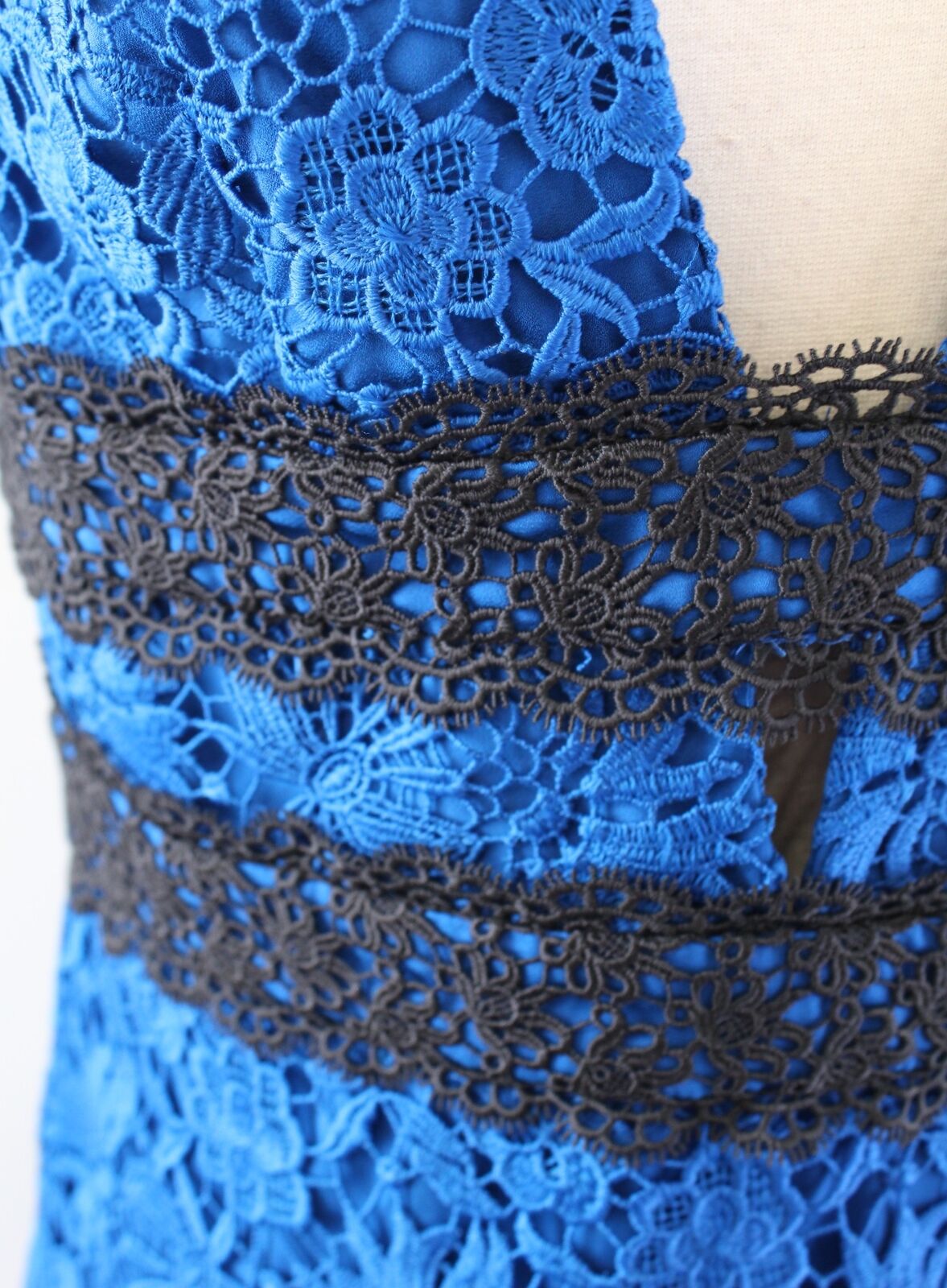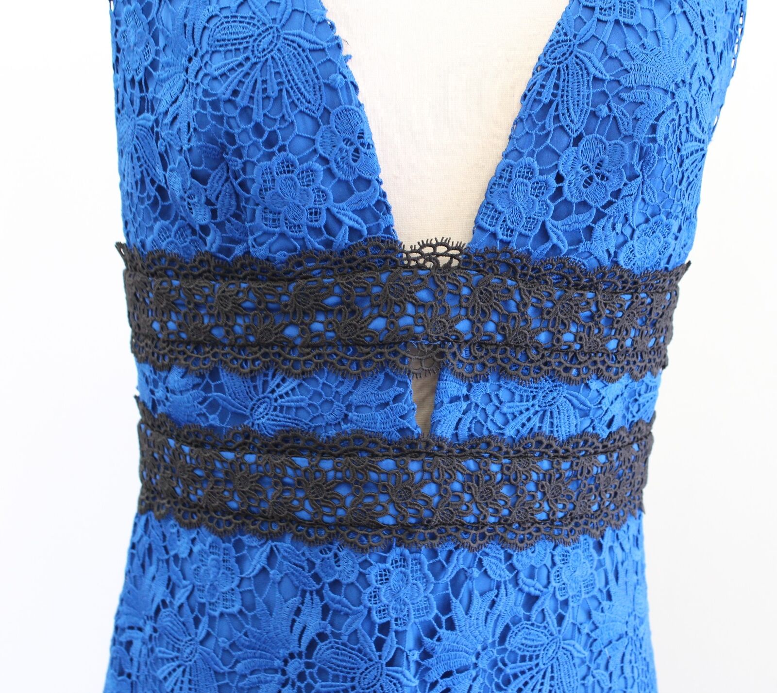 NWT Diane Von Furstenberg Viera Blue Lace Plunge V Neck Sheath Dress Size 6