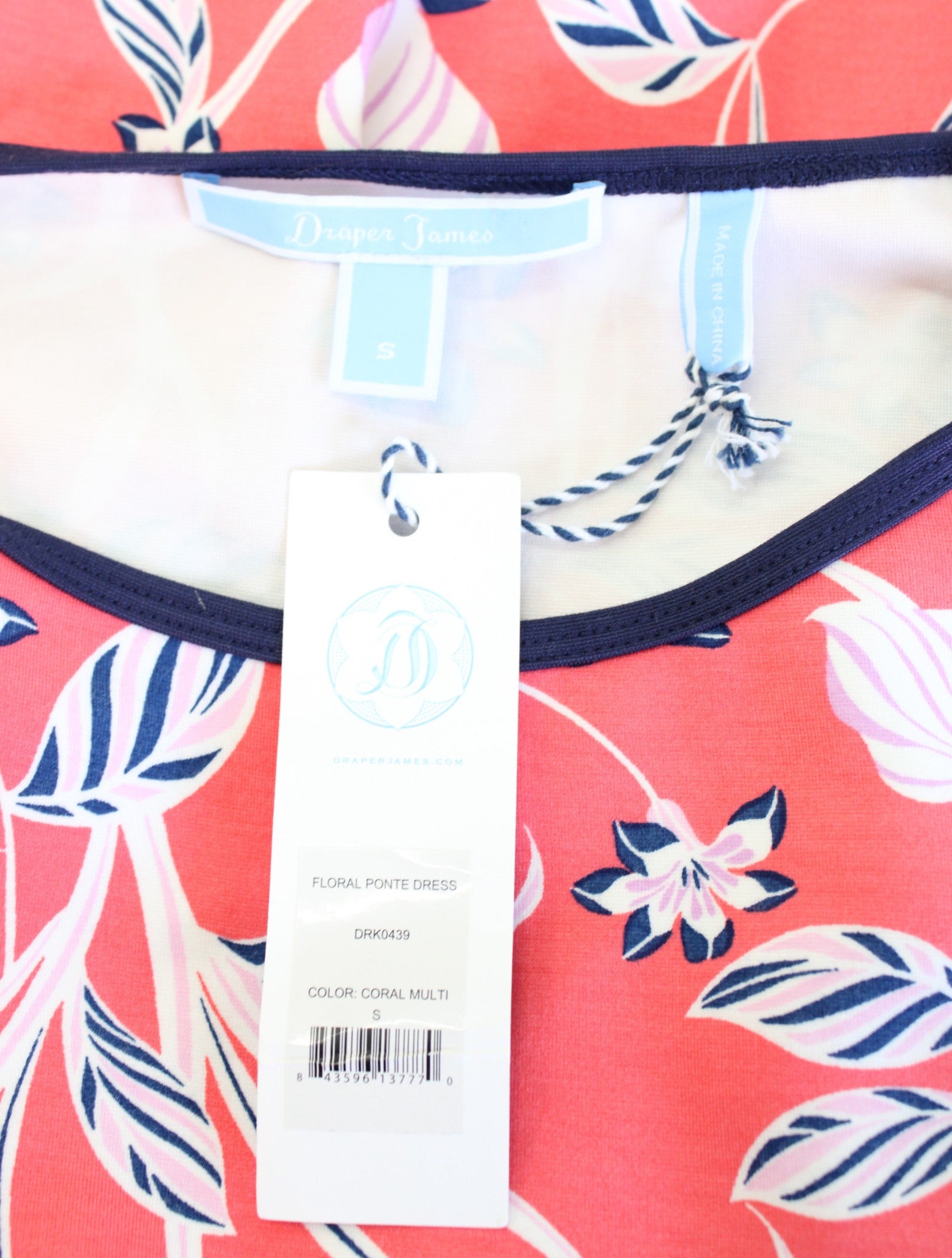 NWT Draper James Coral Floral Print Ponte Knit Fit and Flare Dress Size S Blue