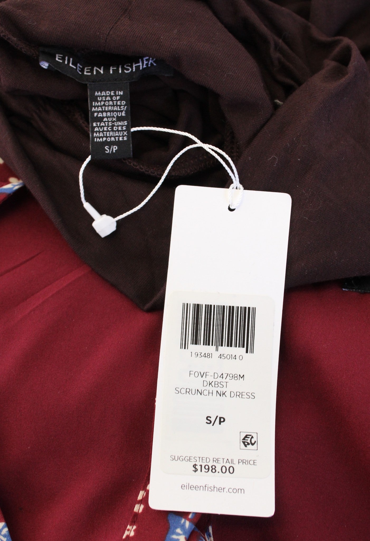 NWT Eileen Fisher Brown Viscose Jersey Knit Scrunch Neck Midi Dress Size S