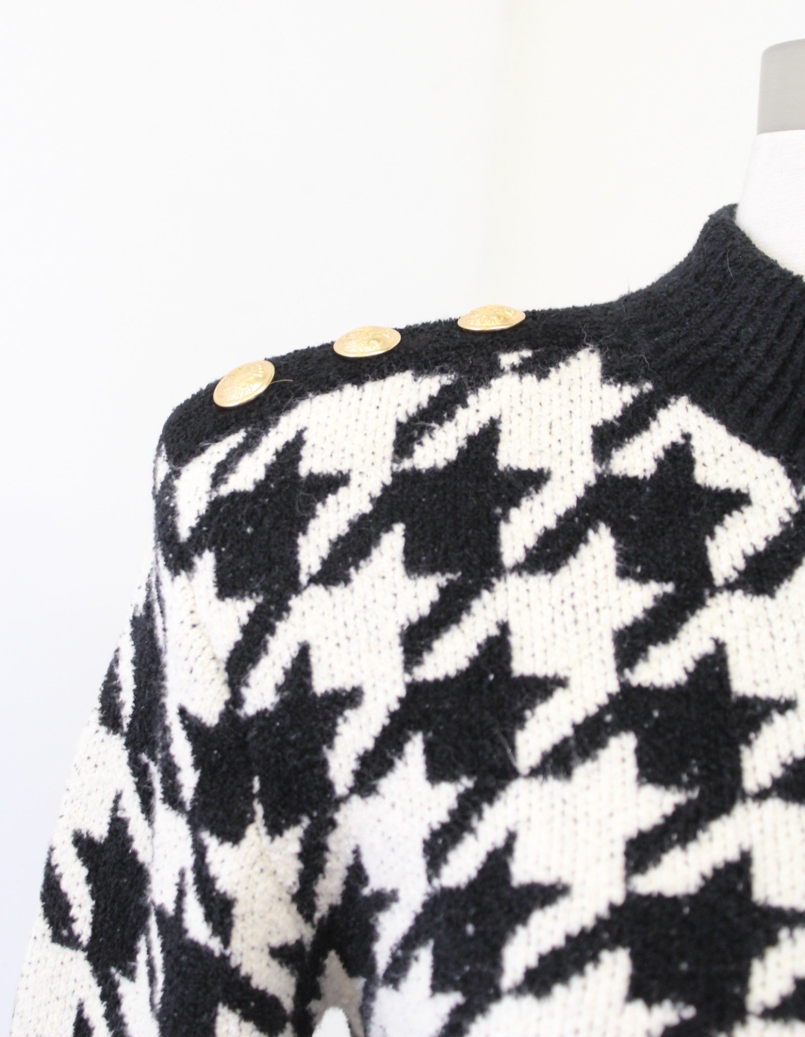 NWT Express Black Cream Houndstooth Mock Neck Mini Fitted Sweater Dress Size S