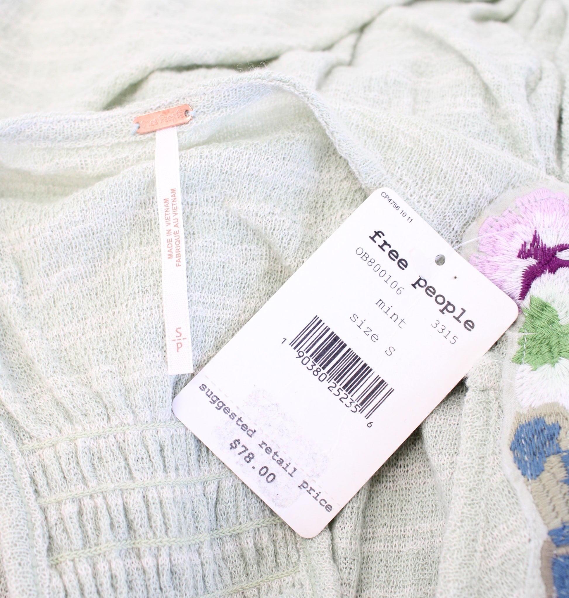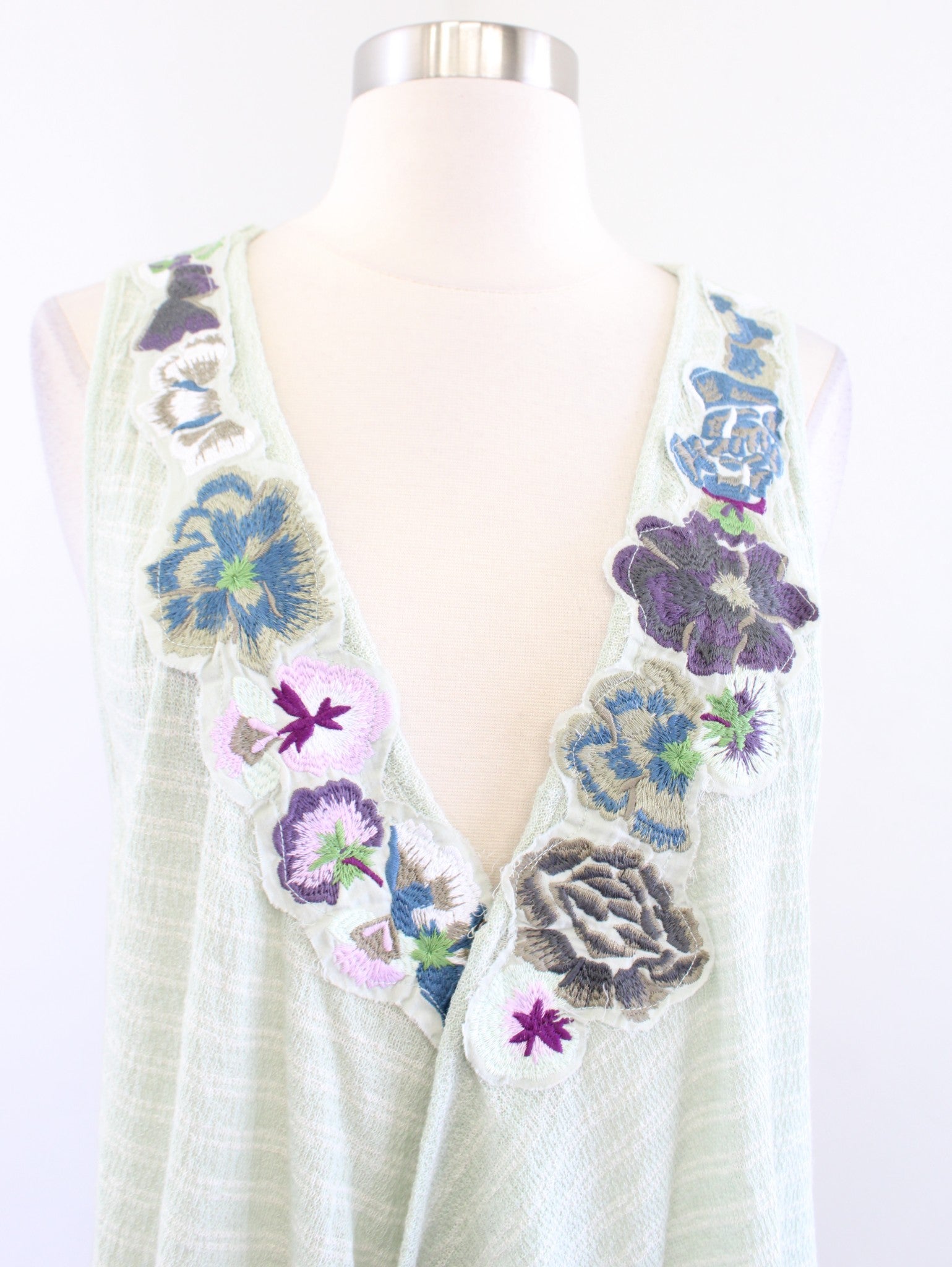 NWT Free People Frida Mint Green Floral Embroidered Knit Tank Top Size S