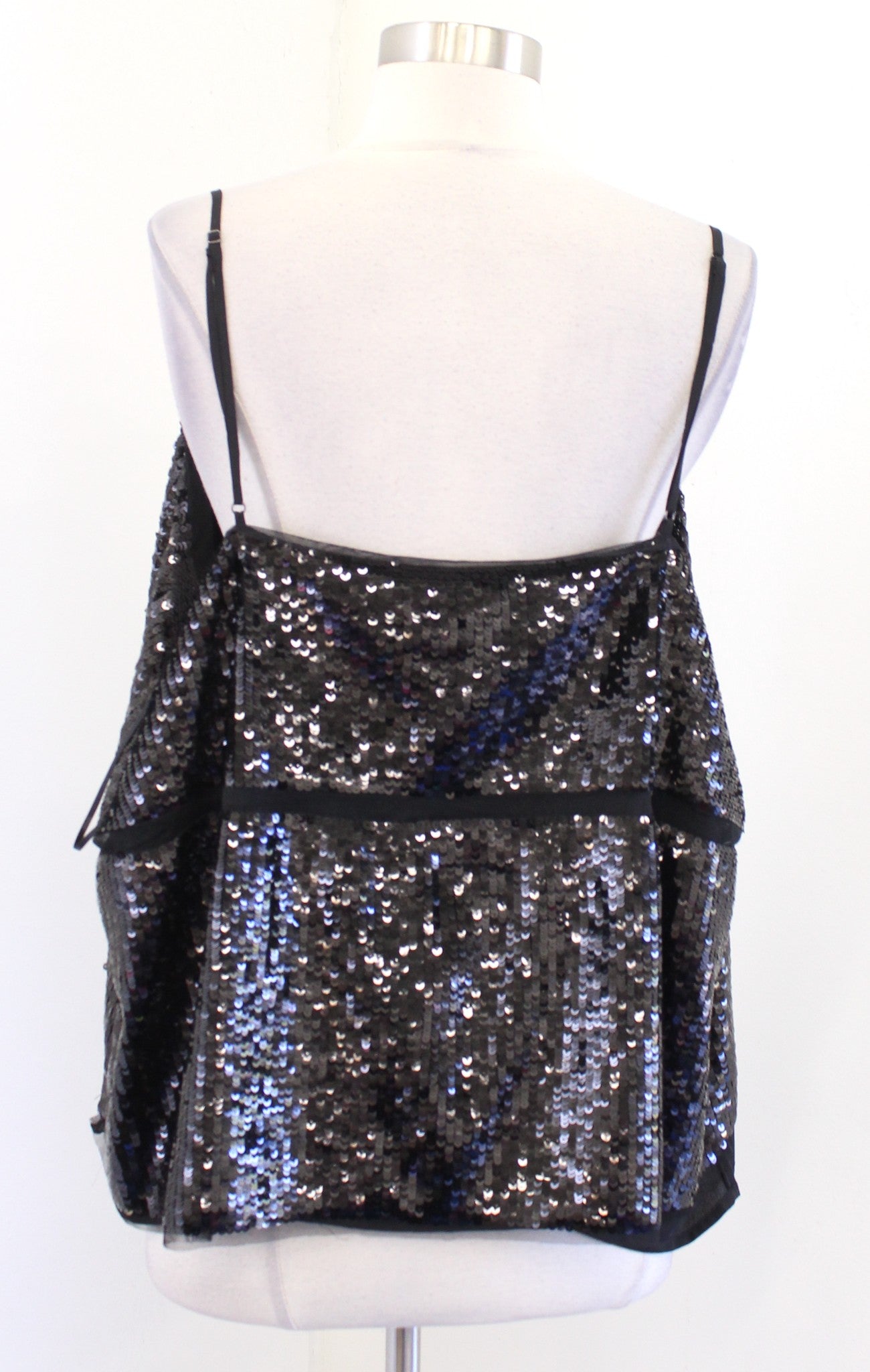 NWT J Crew Black Sequin Tulle Trim Cami Tank Top Size 3X Camisole Blouse V Neck