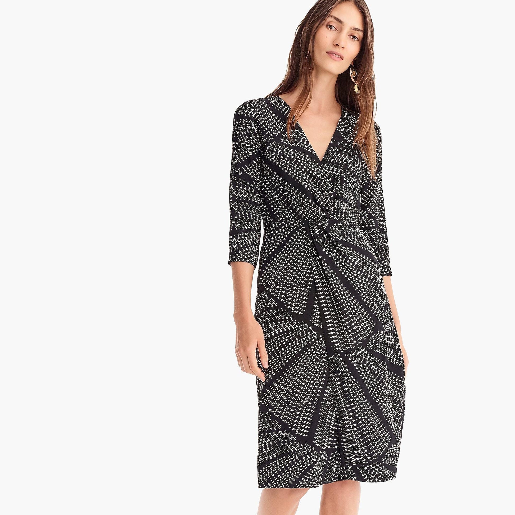 NWT J Crew Black Silk Twist Front Dress in Kaleidoscope Print Size 00 Geometric
