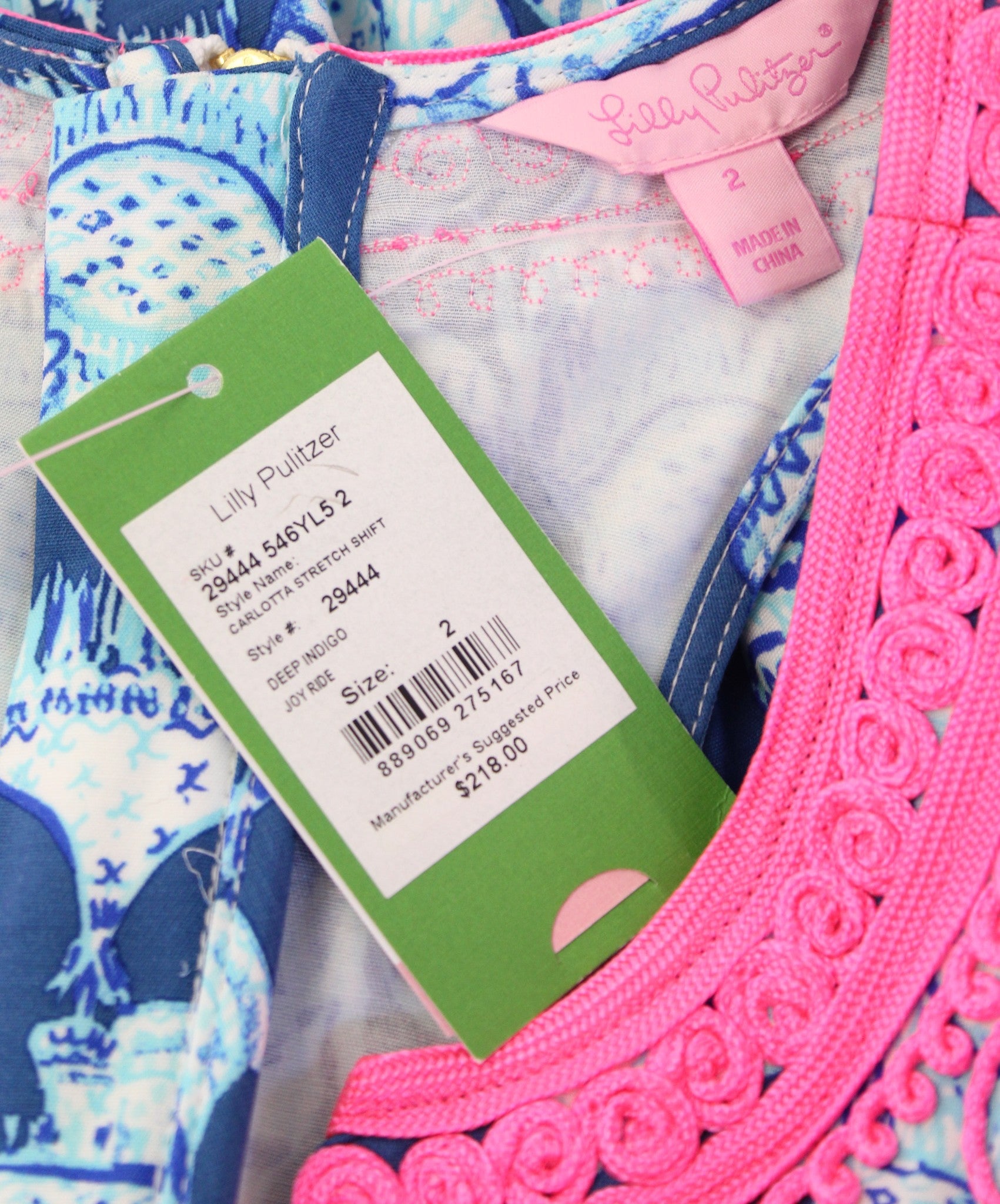 NWT Lilly Pulitzer Carlotta Blue Pink Elephant Print Shift Dress Size 2 Joy Ride