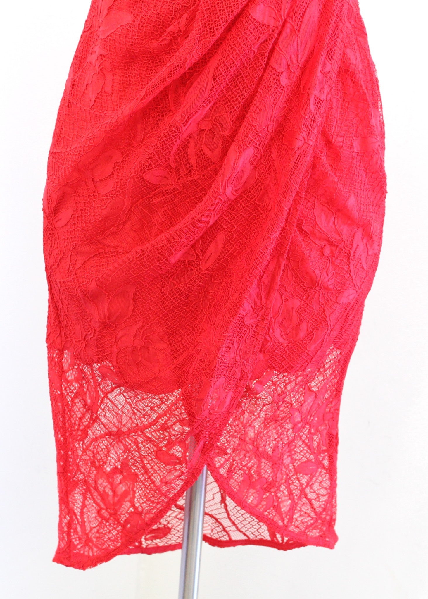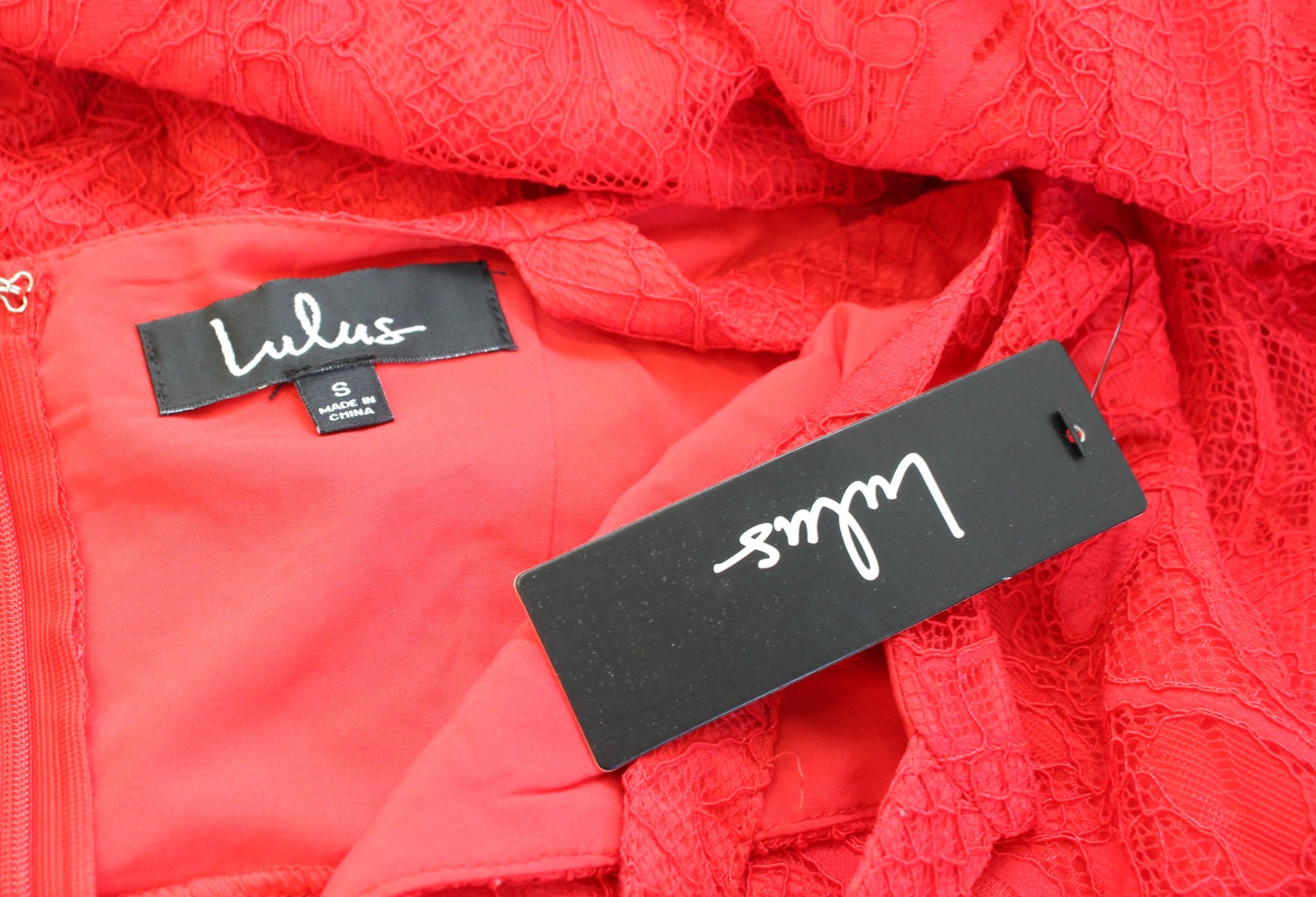 NWT Lulus Meg Red Lace Tulip Hem Cocktail Party Dress Size S V Neck Hi Lo