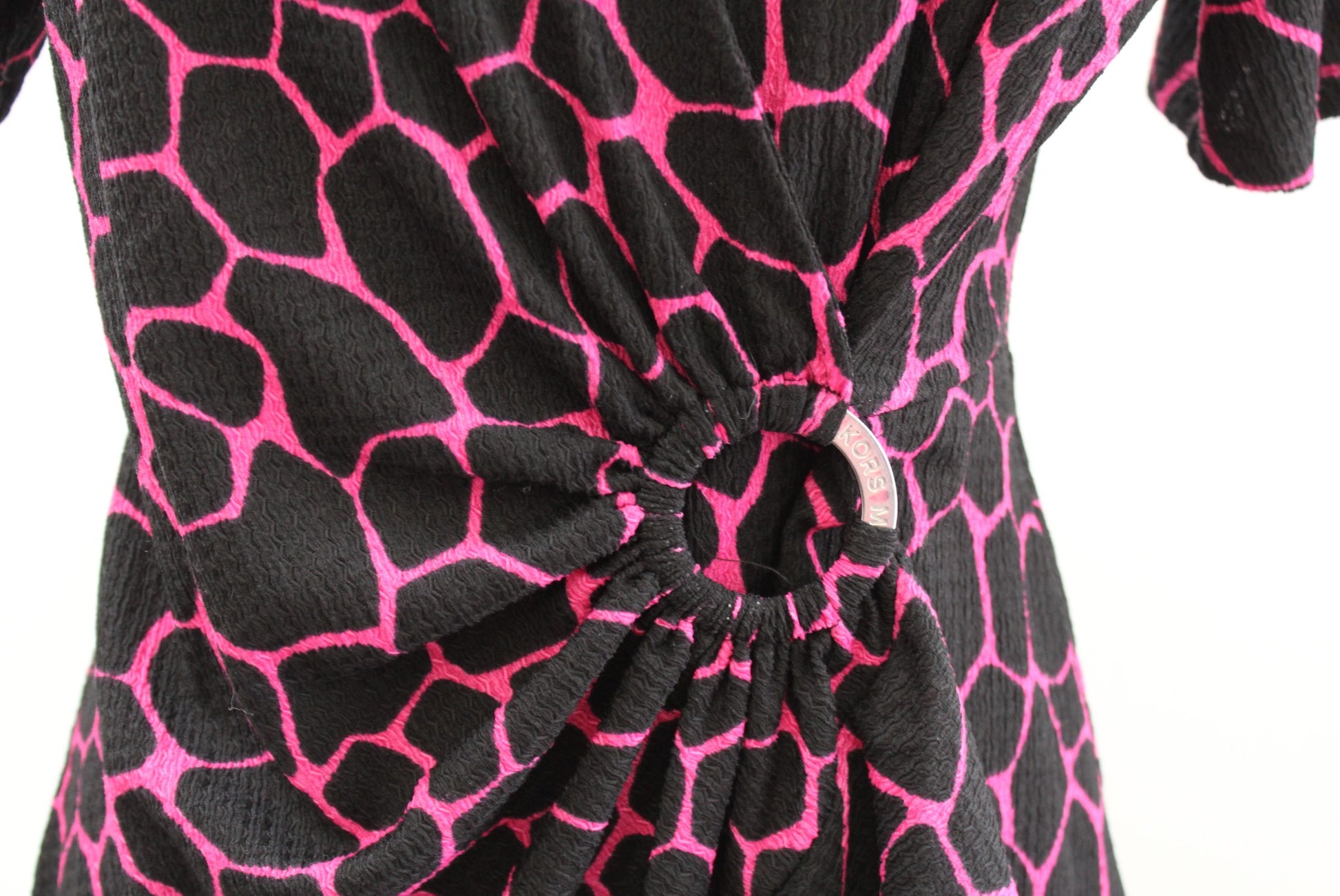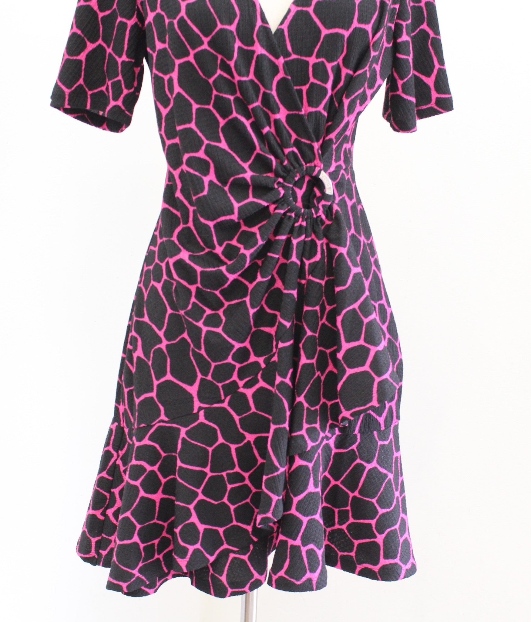 NWT Michael Kors Black Pink Ruffle Faux Wrap Dress Size S Giraffe Print Flounce