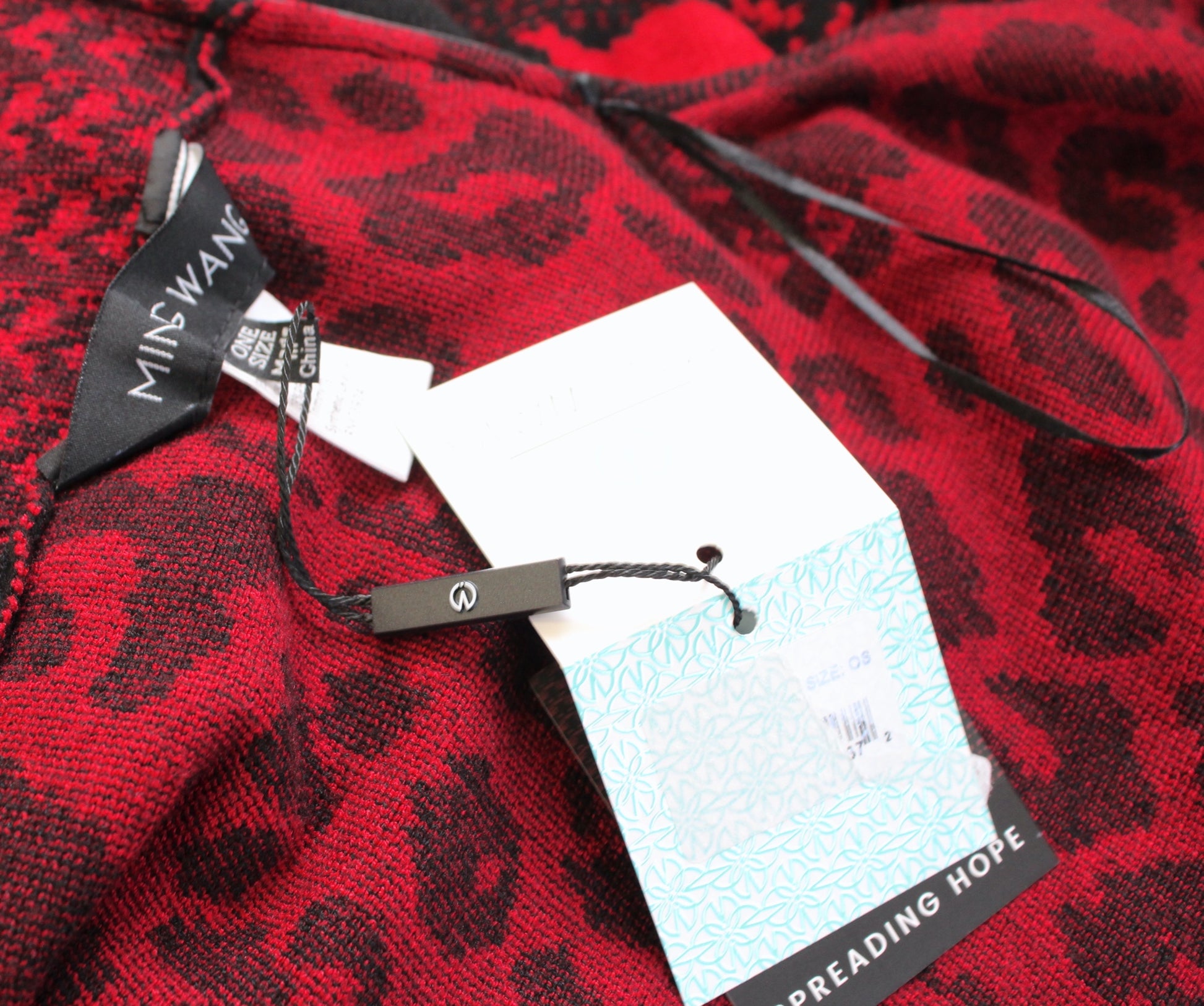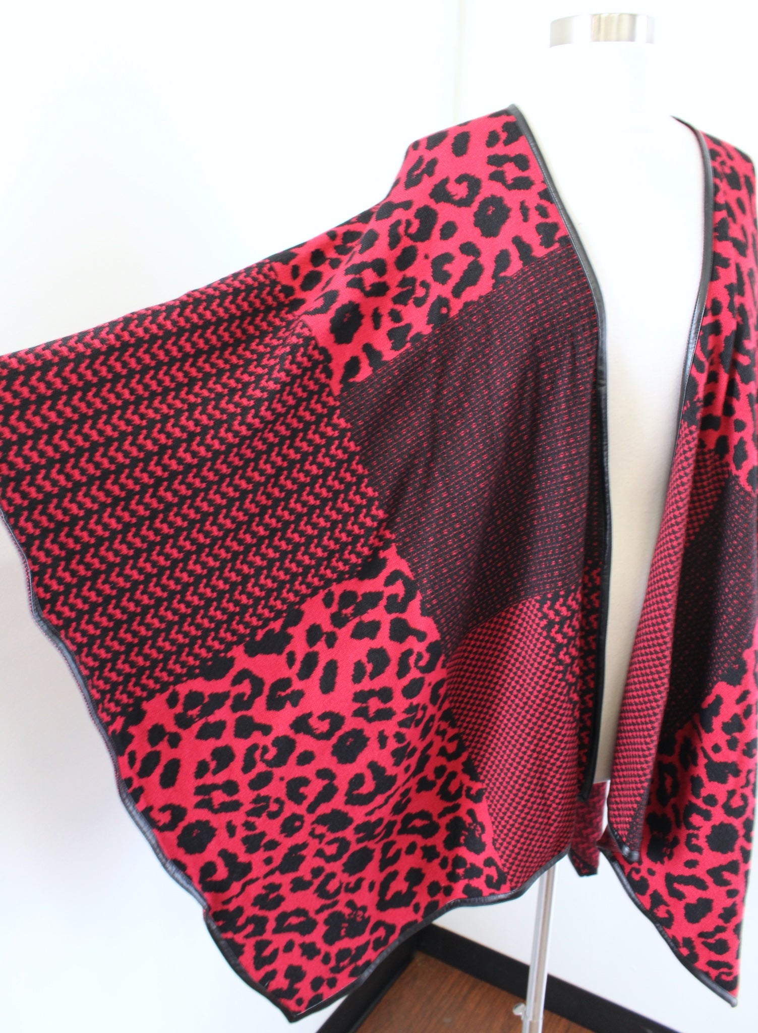 NWT Ming Wang Red Black Leopard Print Knit Hope Wrap Ruana Sweater One Size S M