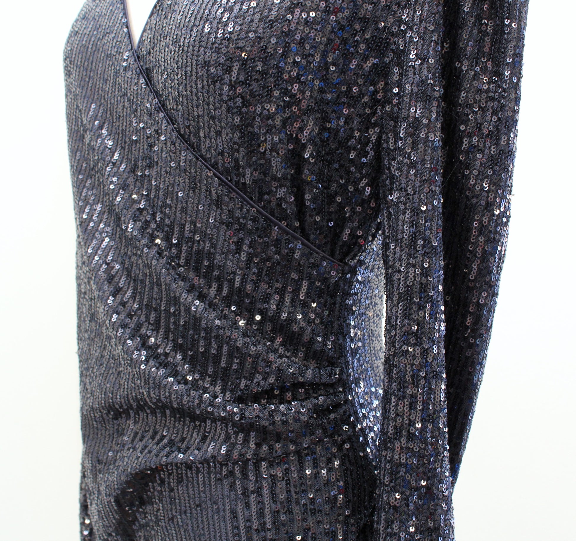 NWT Nanette Lepore Navy Blue Sequin Ruched Faux Wrap Cocktail Party Dress Size 4
