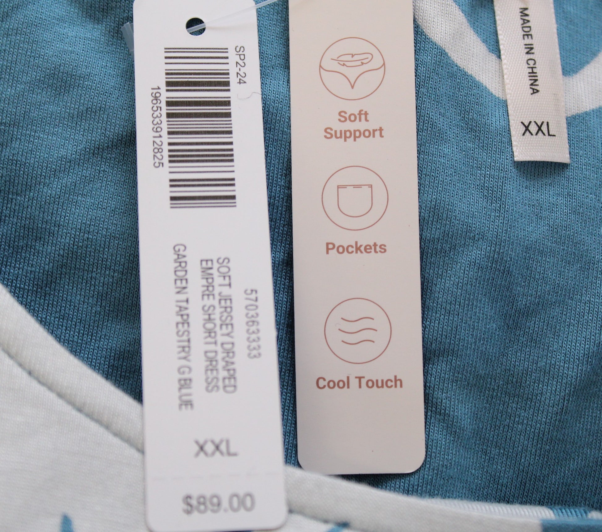 NWT Soma Soft Jersey Draped Empire Bra Dress Size XXL Blue White Floral Casual