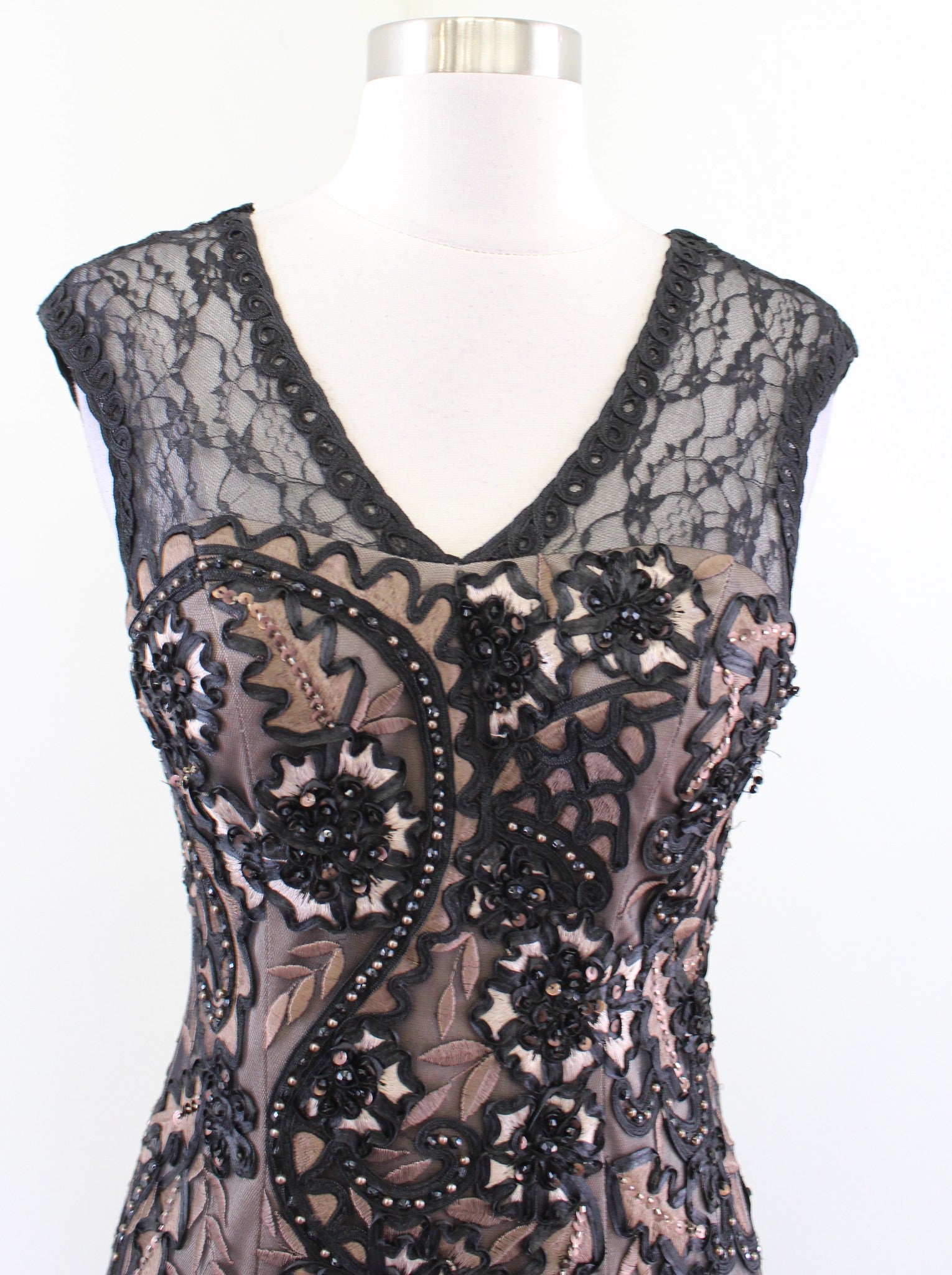 NWT Sue Wong Nocturne Black Embroidered Lace Sequin Cocktail Party Dress Size 2