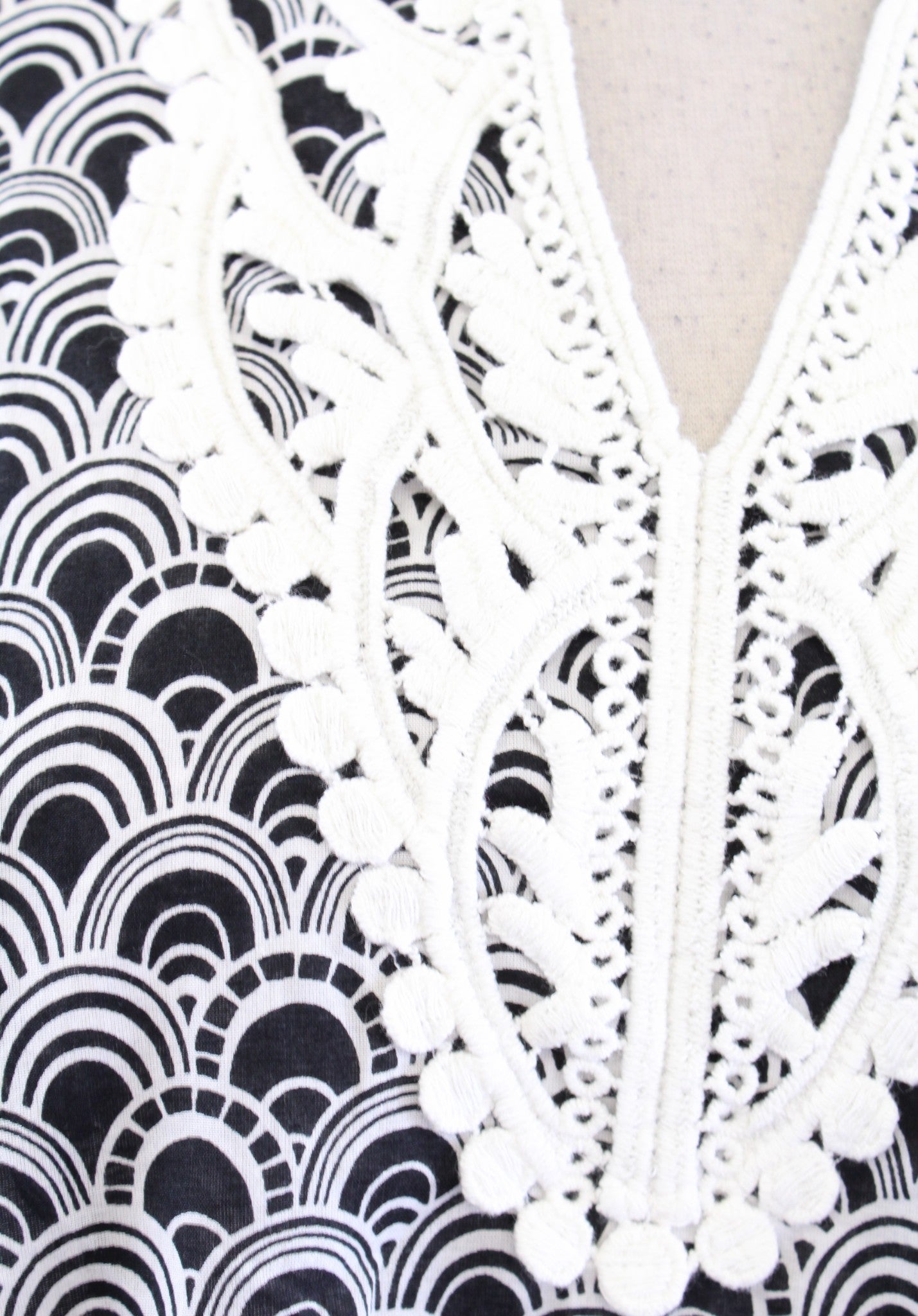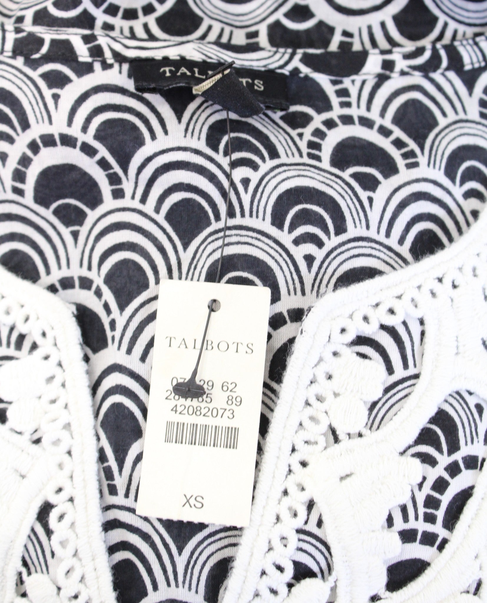 NWT Talbots Black White Geometric Print Lace Applique Tunic Top Blouse Size XS