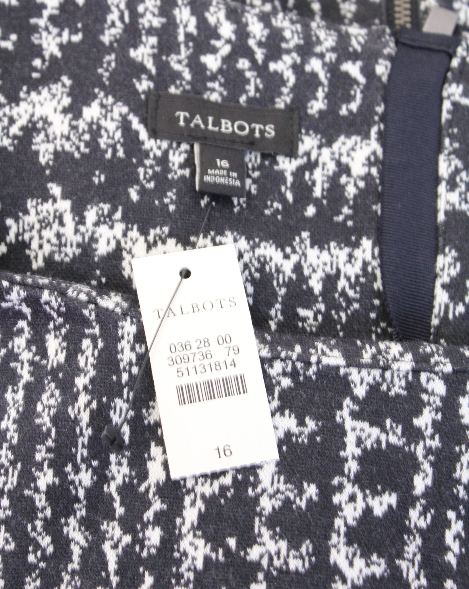 NWT Talbots Womens Black Gray White Plaid Bell Sleeve Knit Shift Dress Size 16