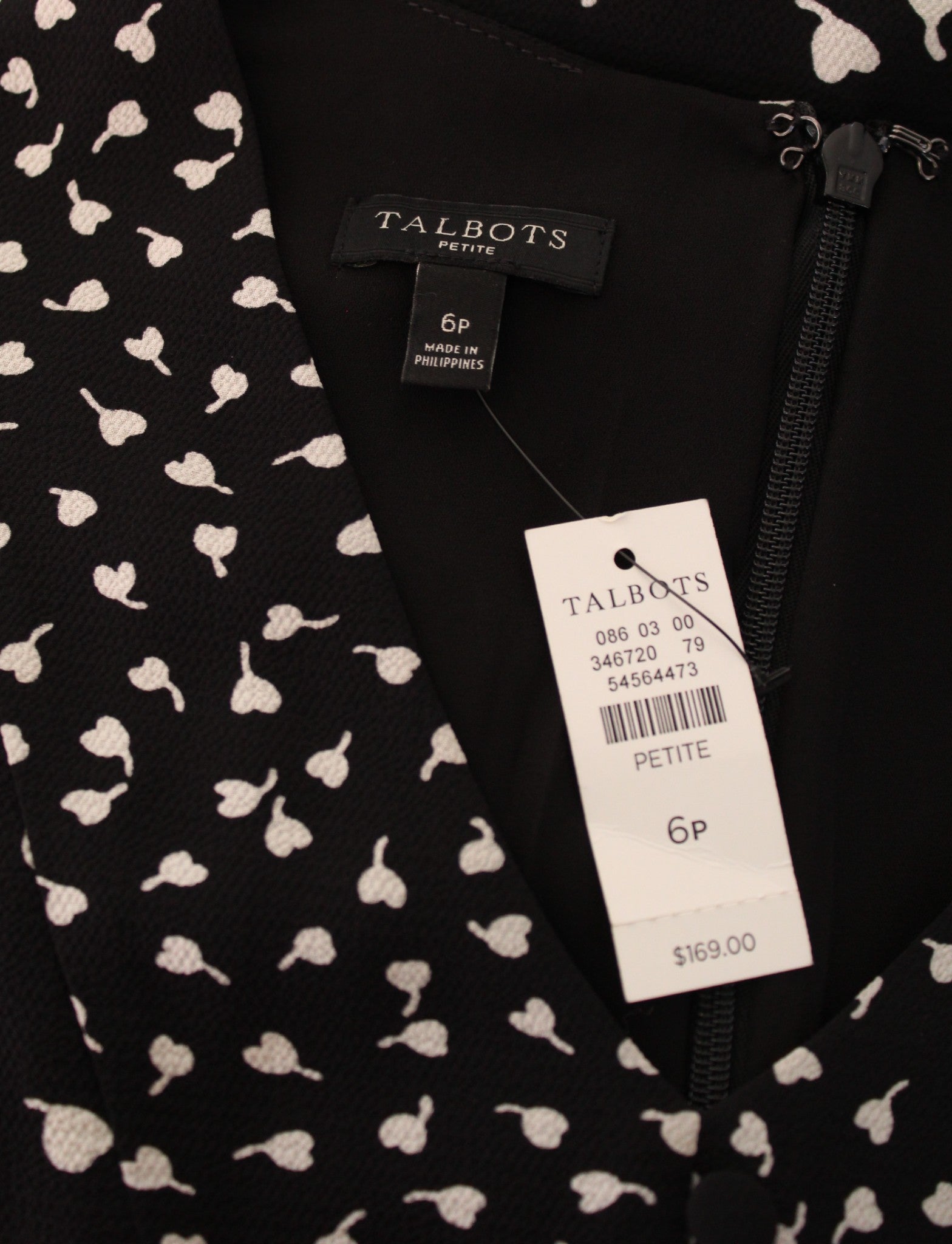 NWT Talbots Womens Black White Floral Flutter Sleeve Midi Dress Size 6P