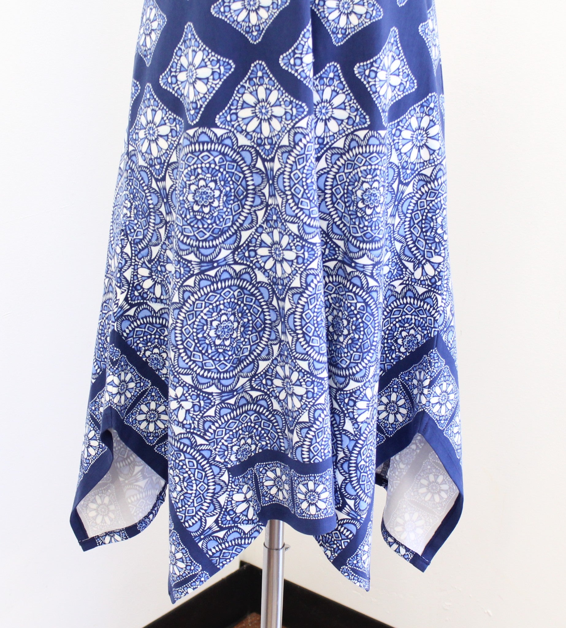 NWT Tommy Bahama Blue Medallion Print Asymmetric Handkerchief Hem Dress XXS 2XS