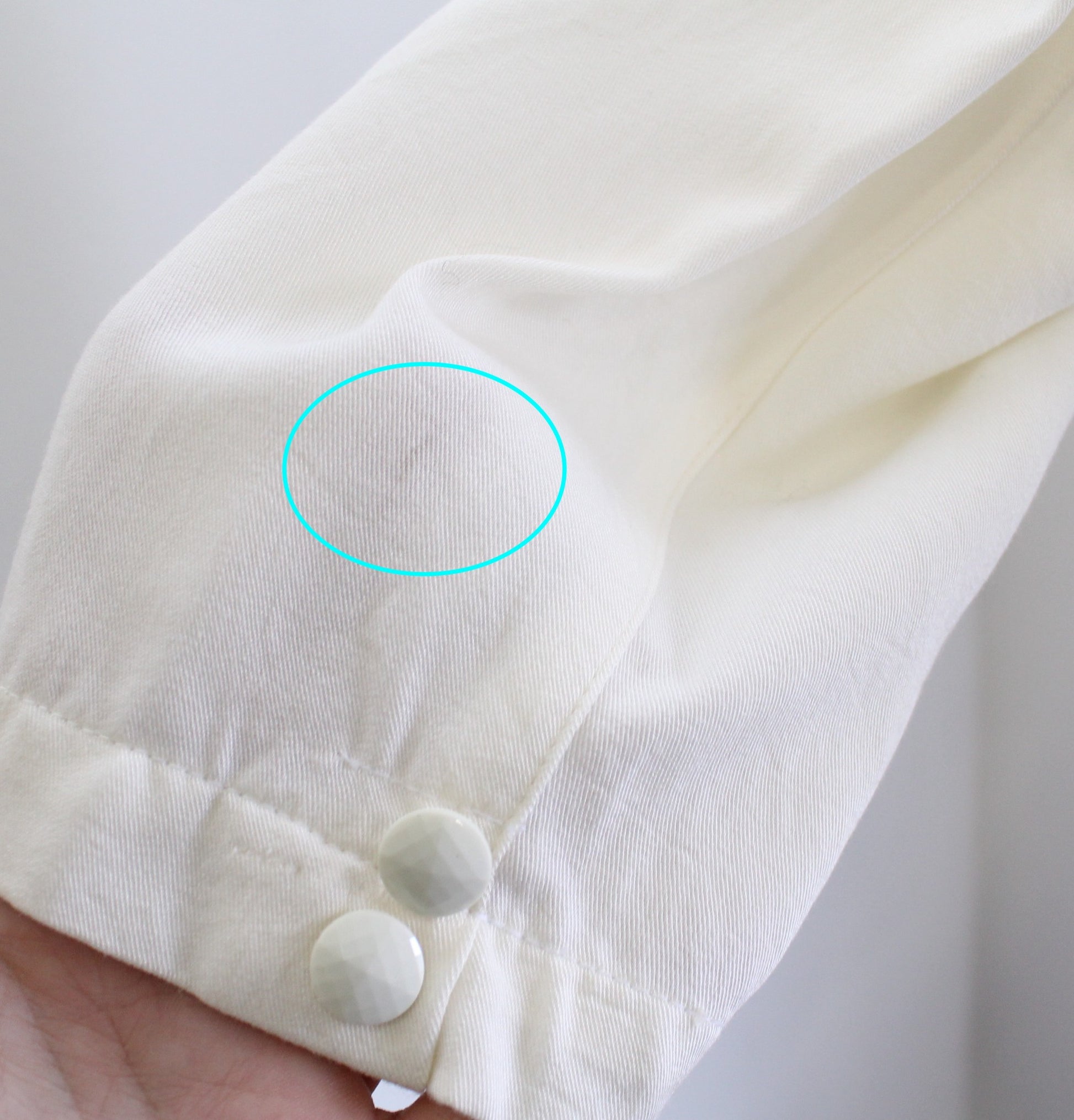Has orginal tags attached-- there is one faint spot on one sleeve. See last photo.