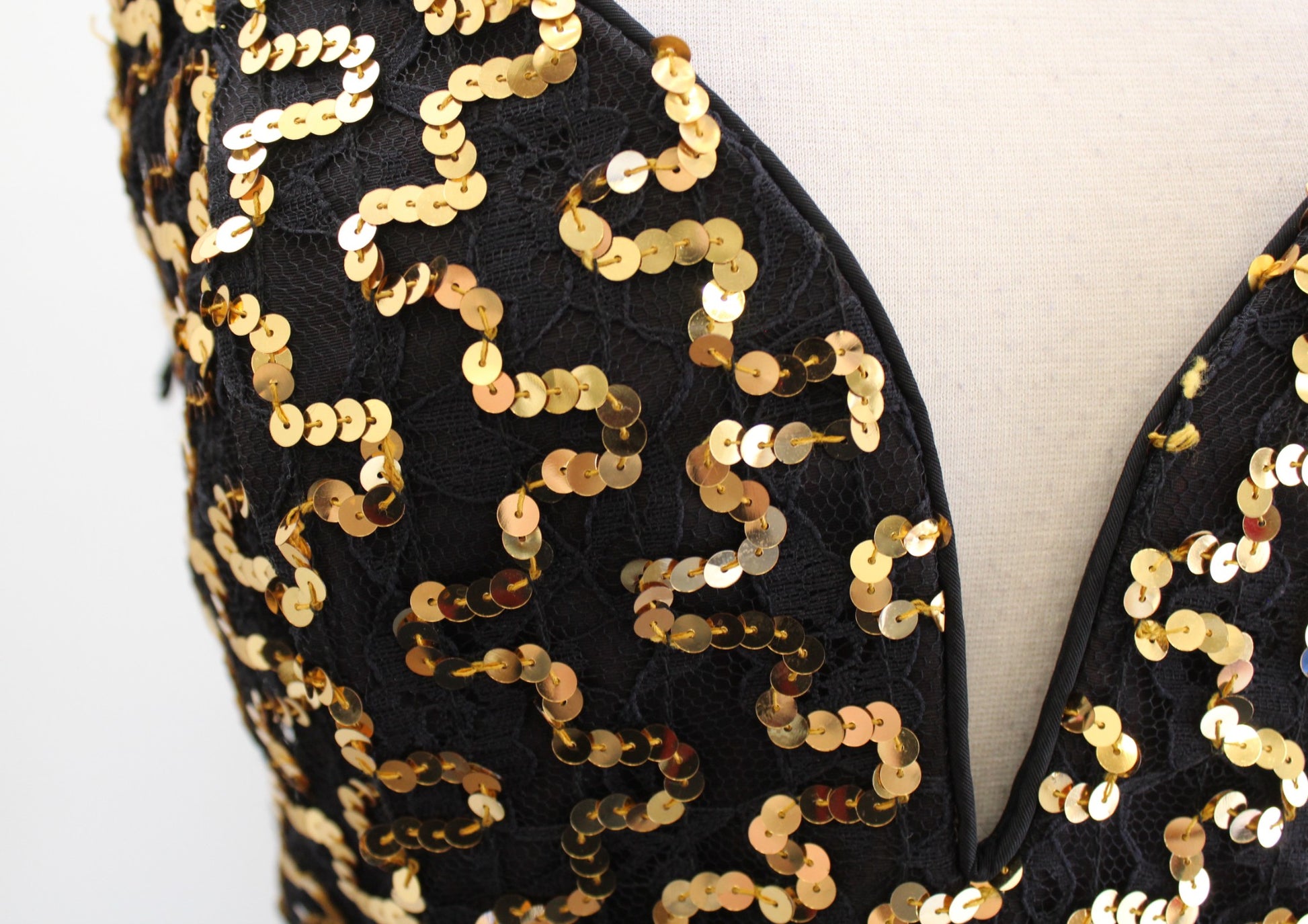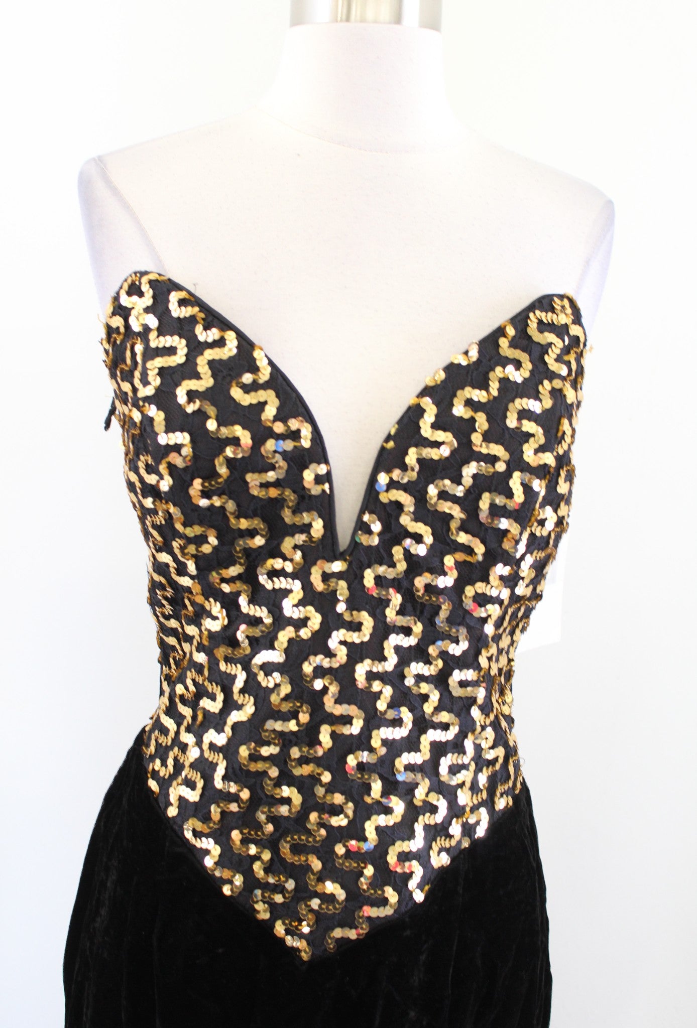 NWT Vtg 90s Black Velvet Gold Sequin Strapless Evening Party Dress Size 13 M ?