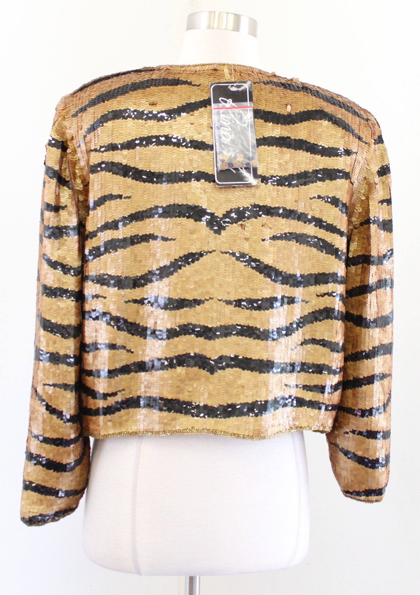NWT Vtg 90s Gold Black Silk Beaded Sequin Evening Party Jacket Size M Deadstock