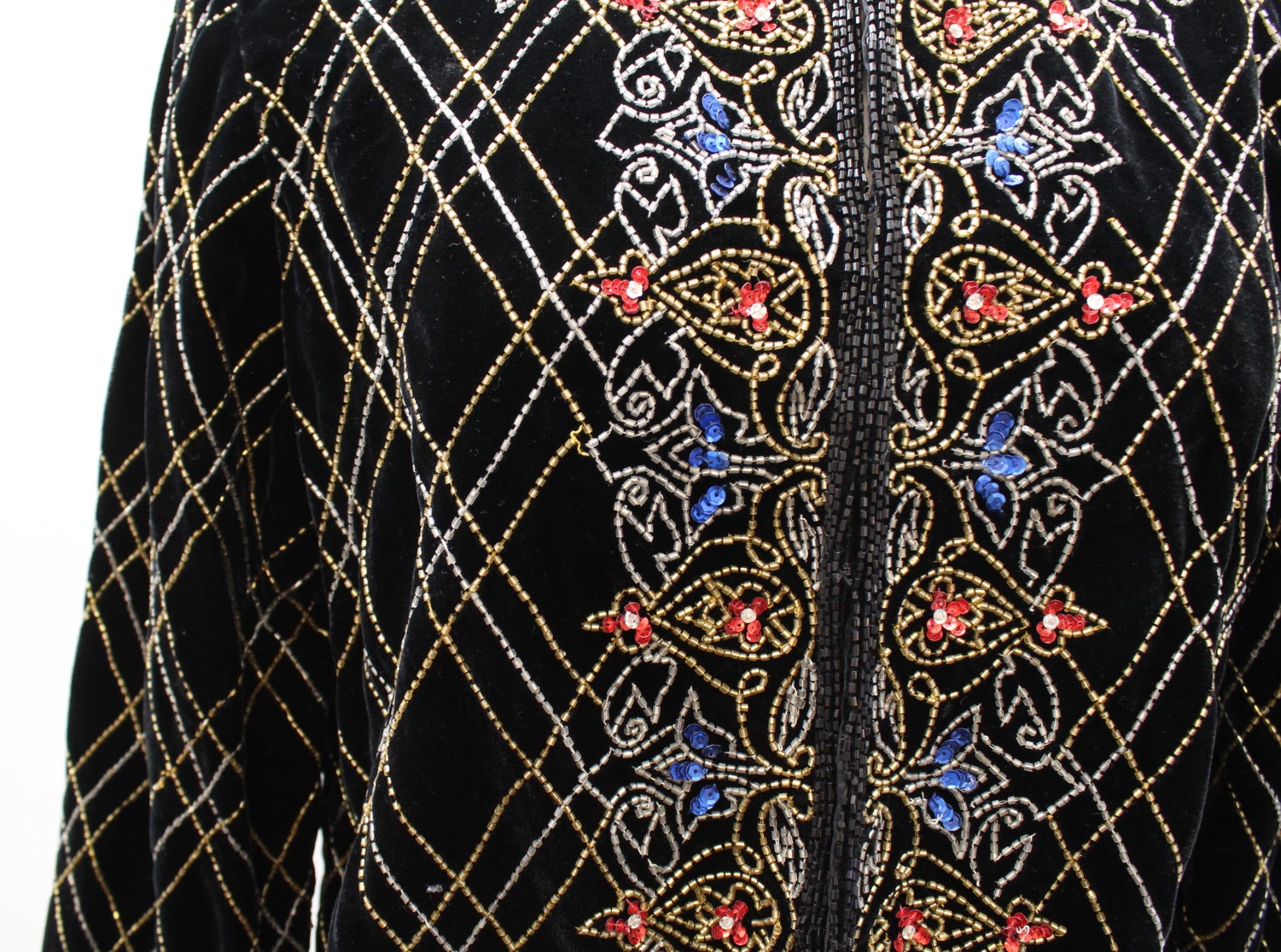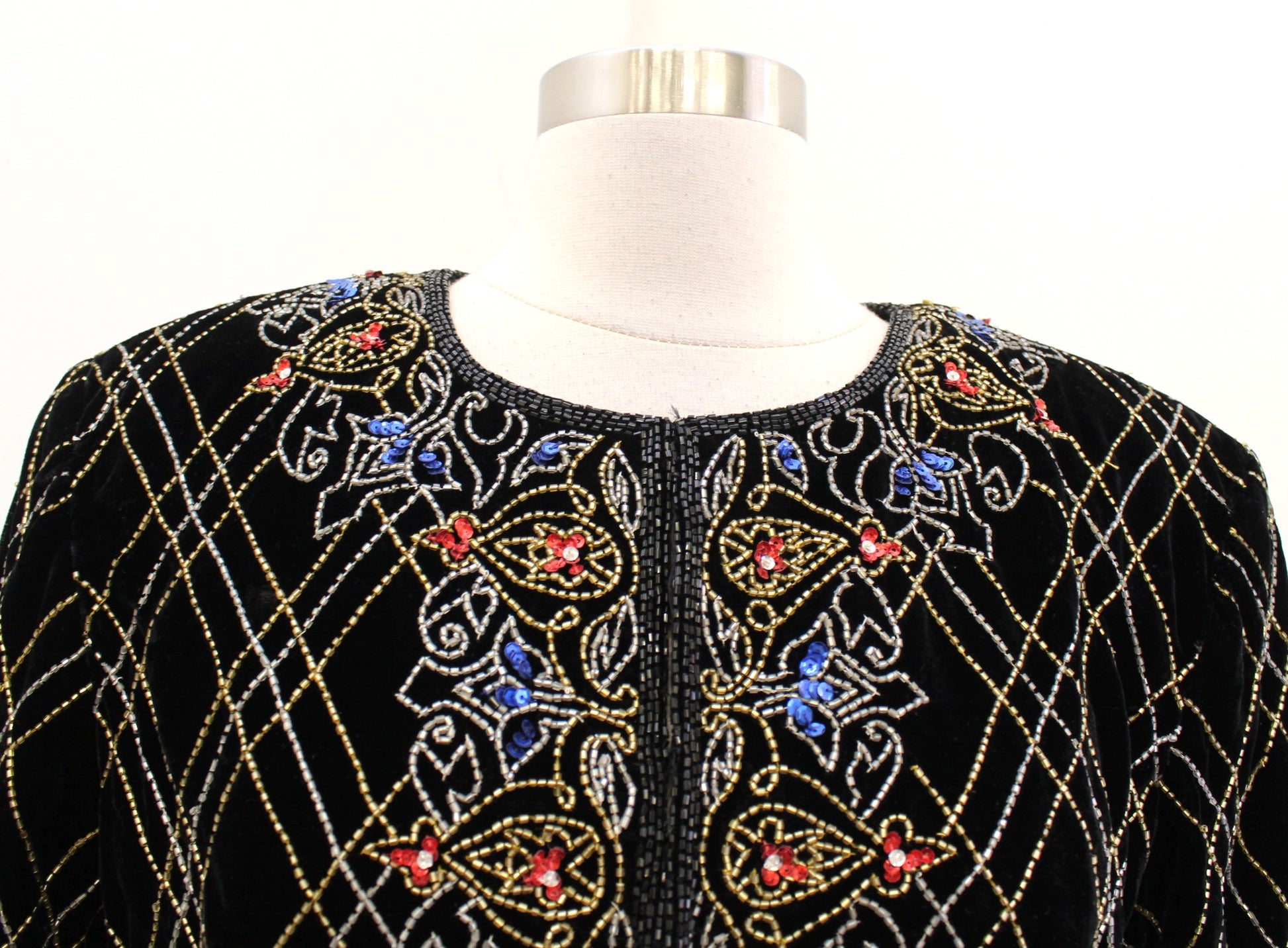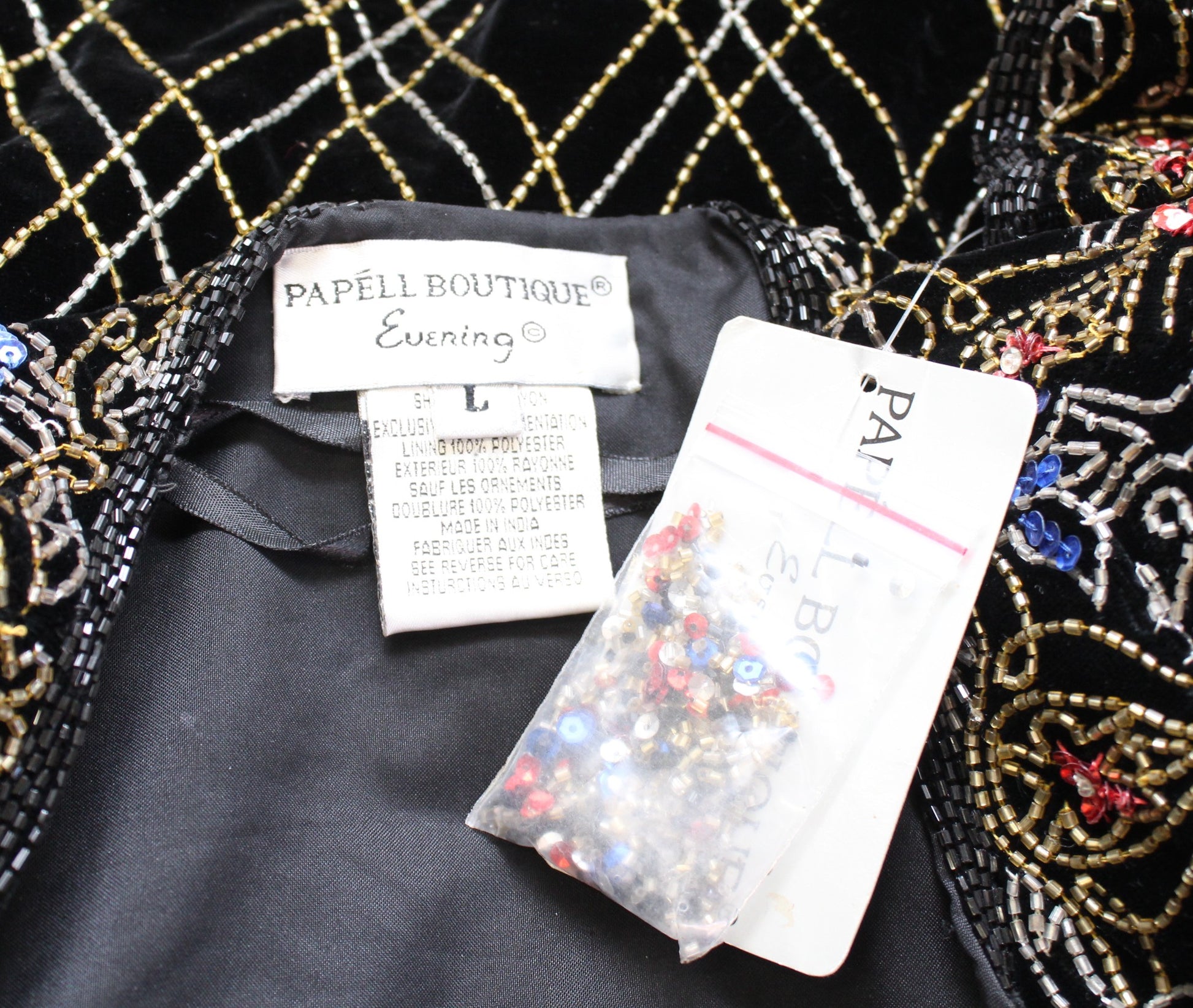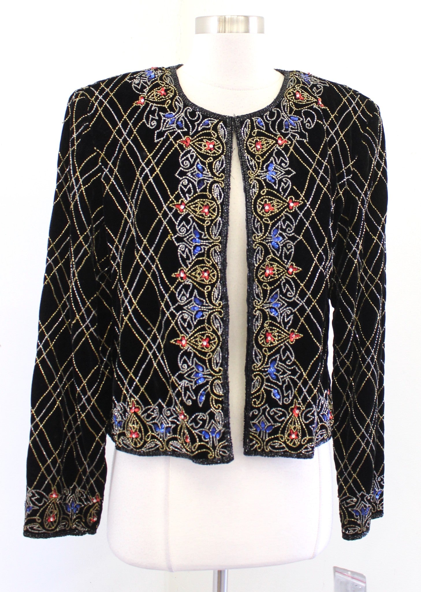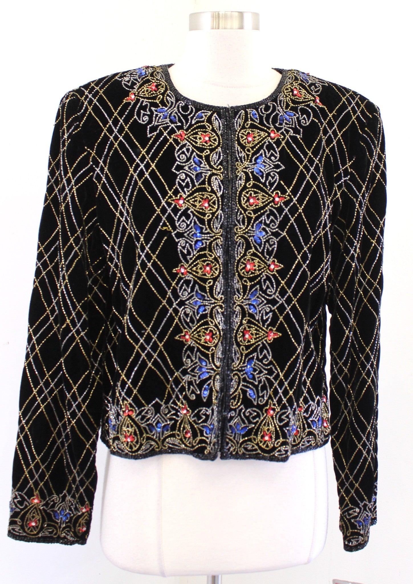 NWT Vtg Papell Boutique Black Velvet Sequin Beaded Evening Party Jacket Size L