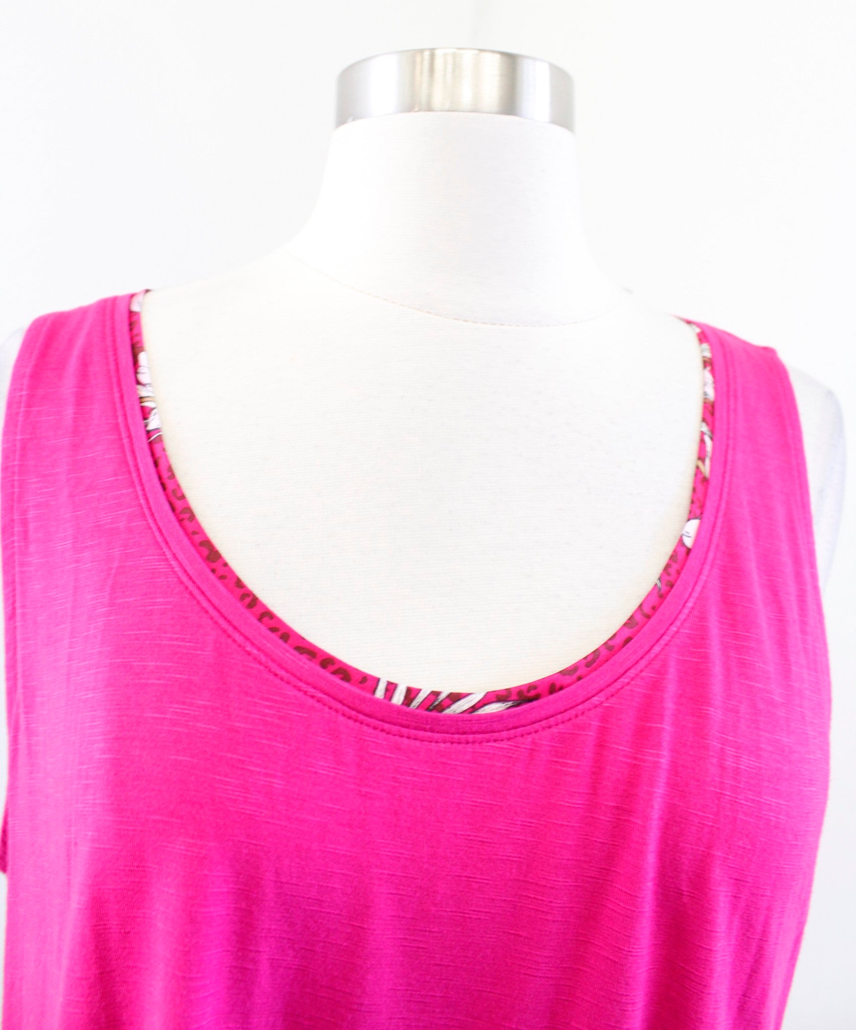 NWT White House Black Market Pink Printed Hem Woven Tank Top Blouse Size L