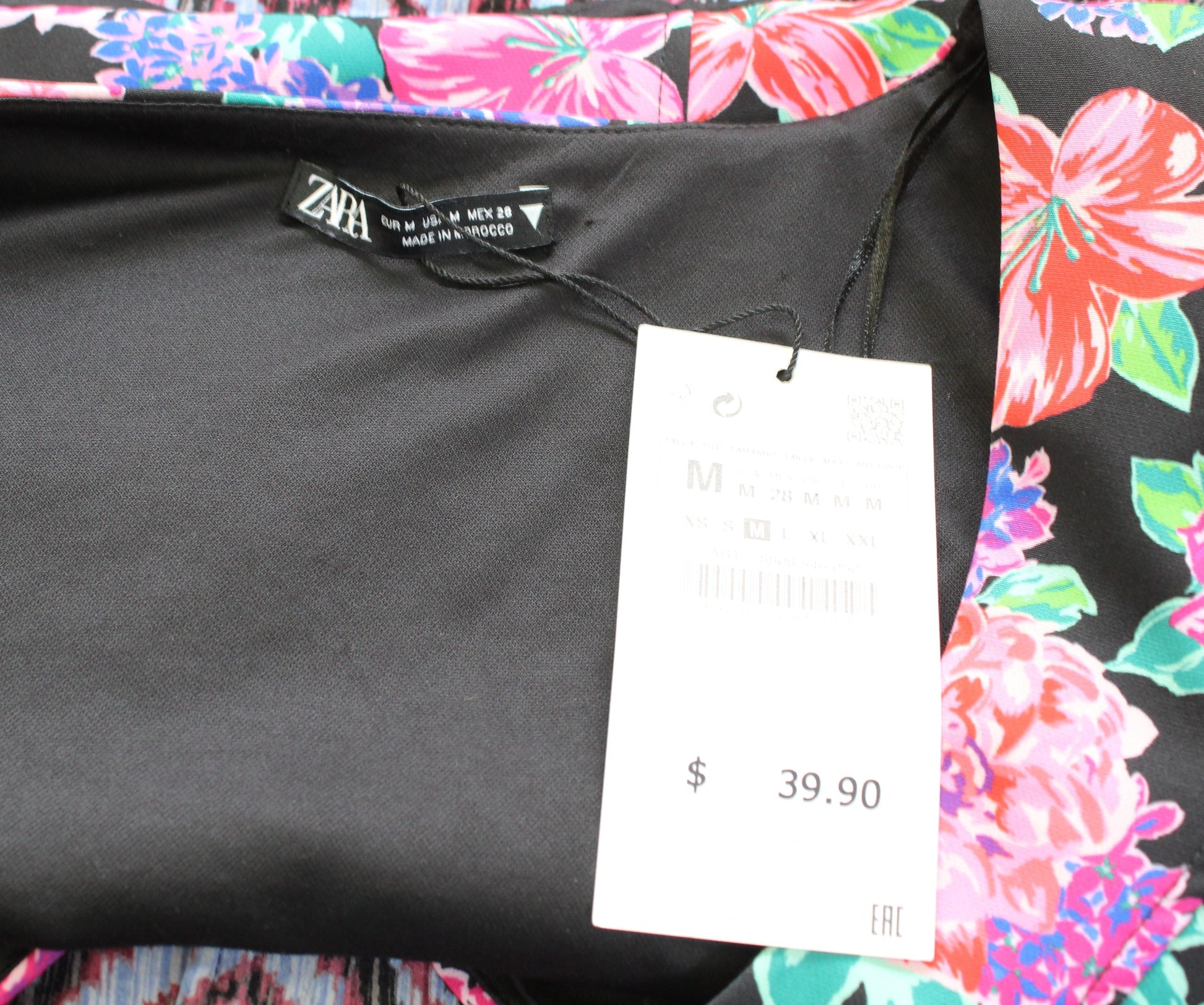 NWT Zara Bright Floral Print Puff Sleeve Crop Top Blouse Size M V Neck Black