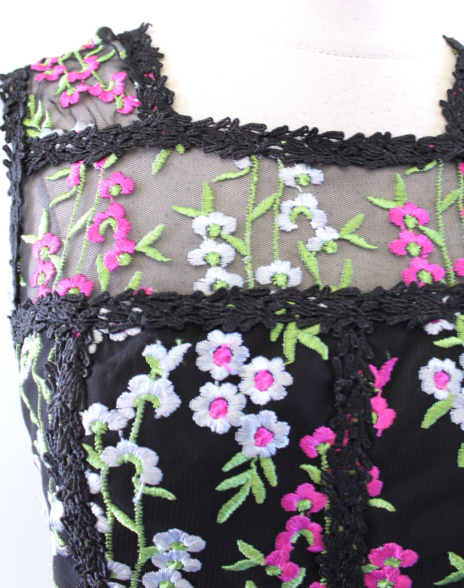 Parker Black Black Mesh Floral Embroidered A Line Dress Sz 2 Cocktail Party Pink