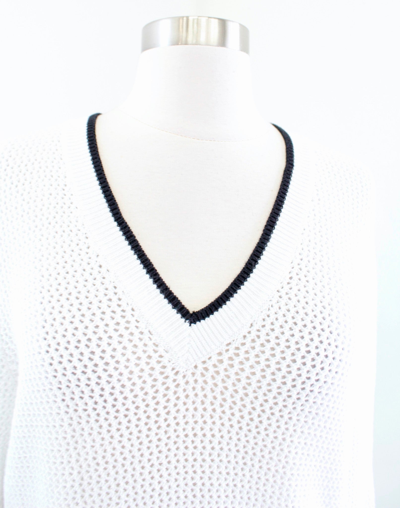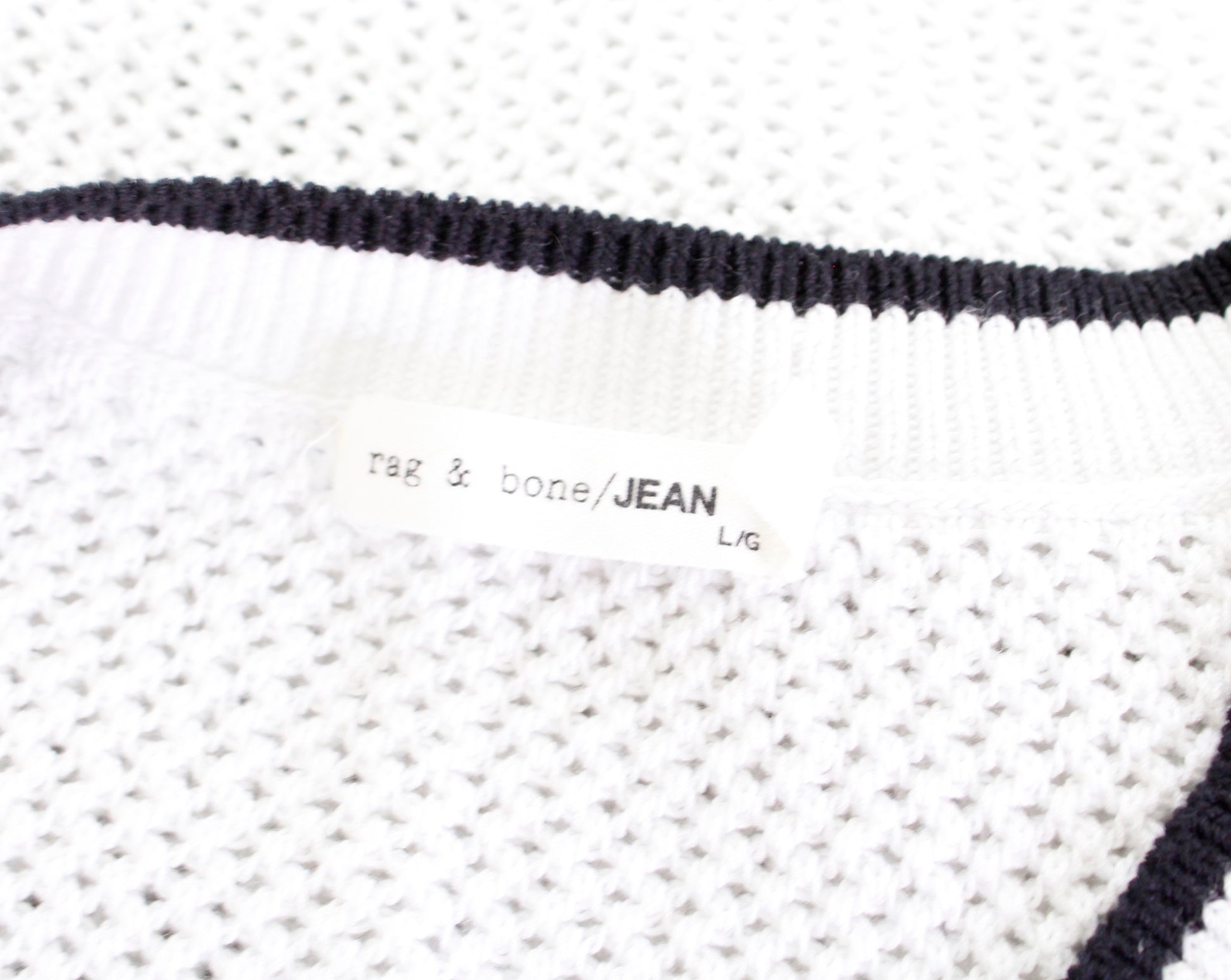 Rag and Bone Jean White Black Sheer Open Knit V Neck Pullover Sweater Size L