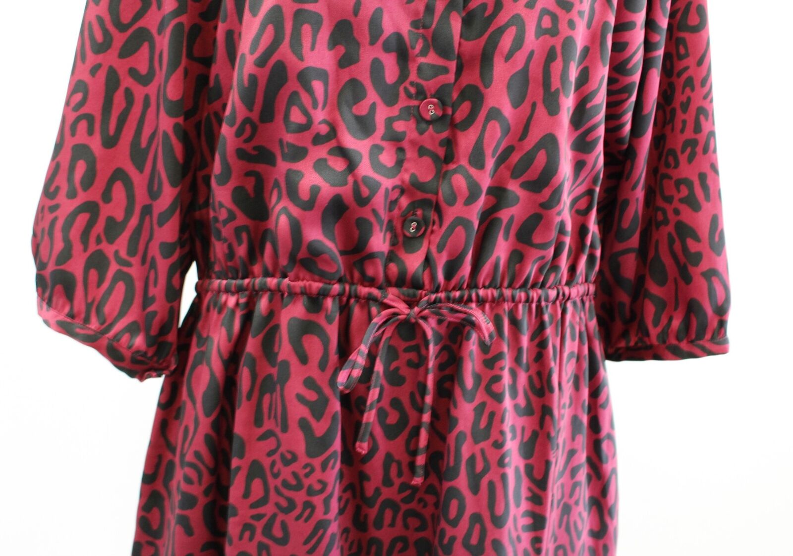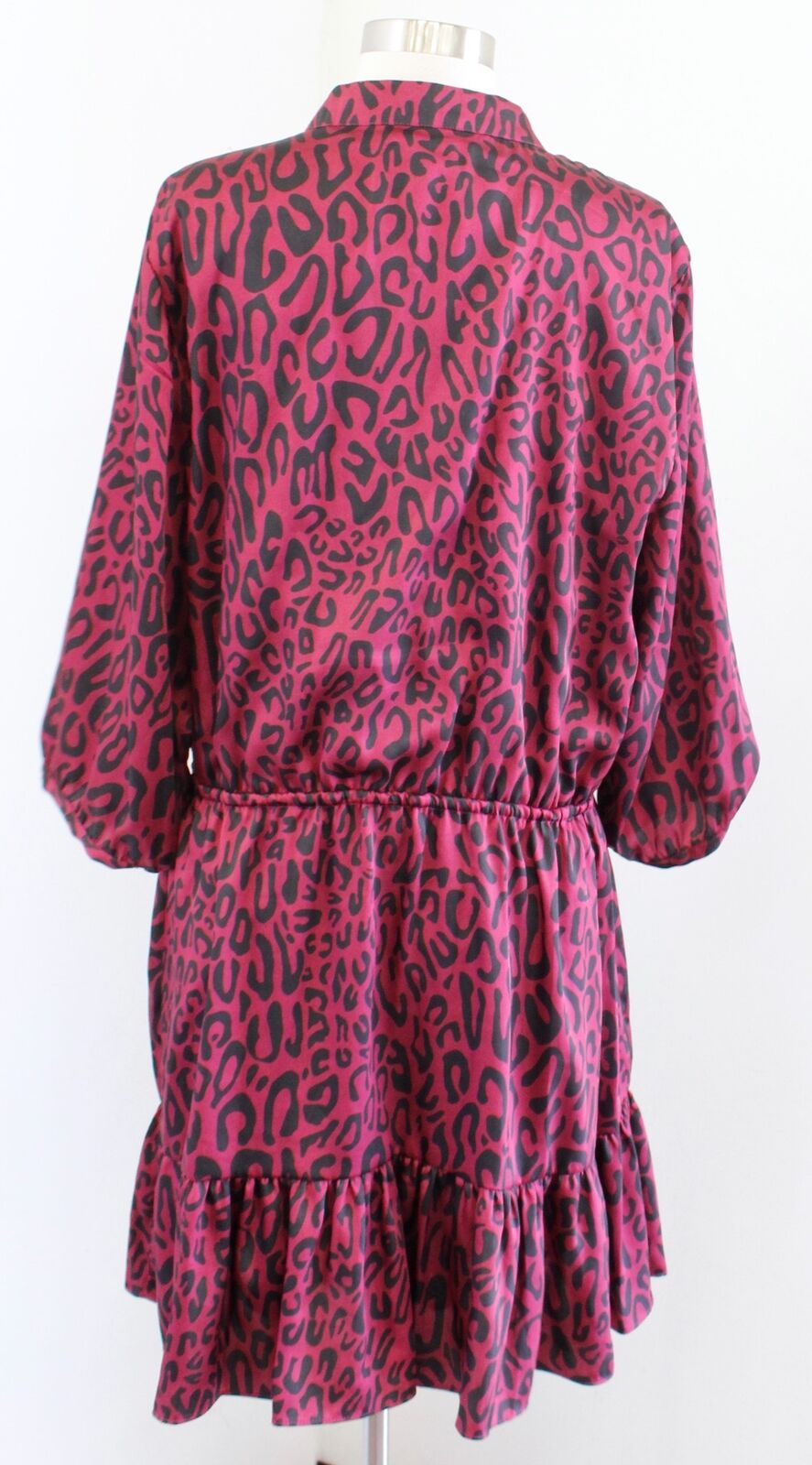 Rebecca Minkoff Burgundy Leopard Print Shirt Dress Size XXL Flounce Hem Cheetah