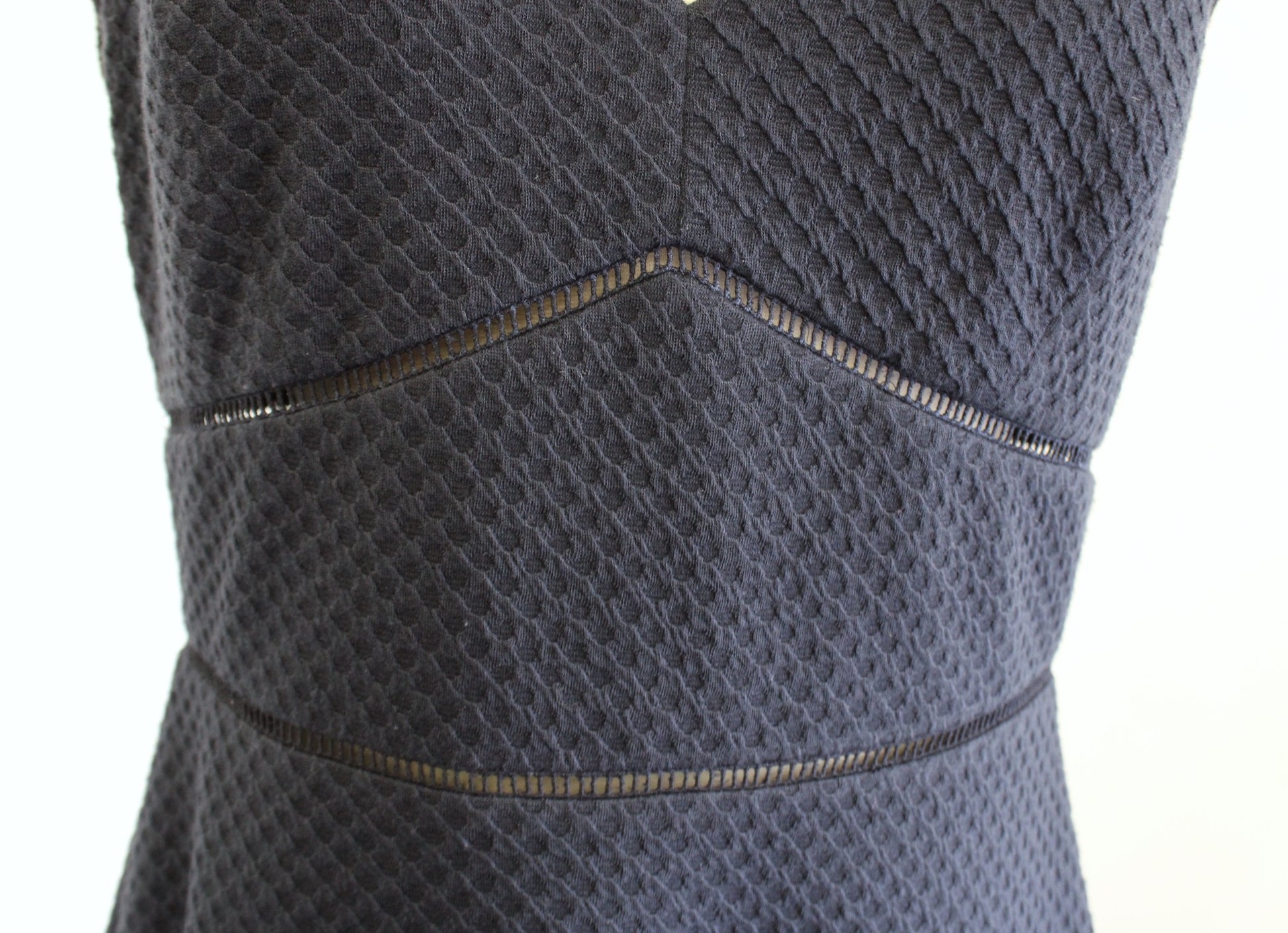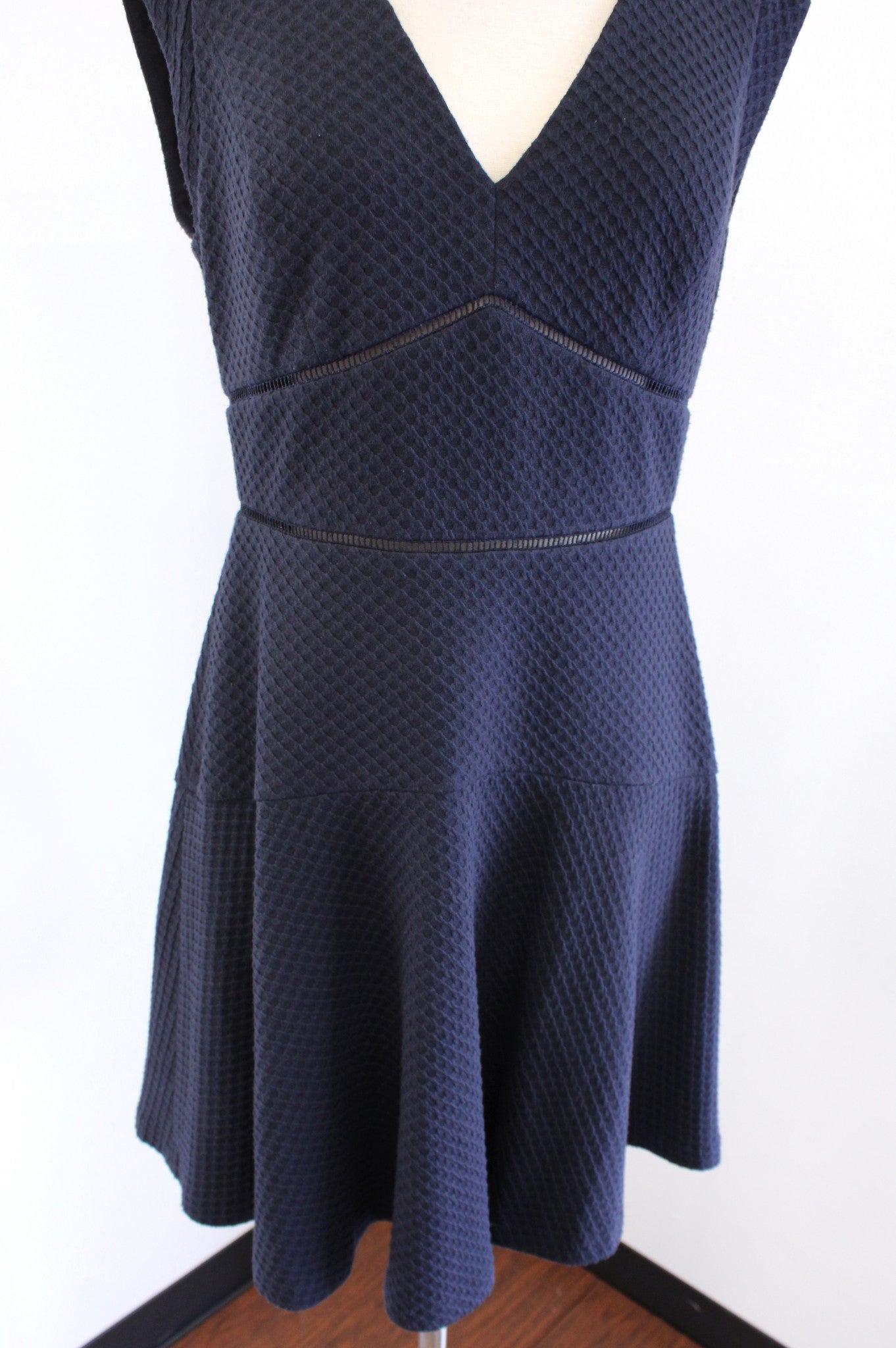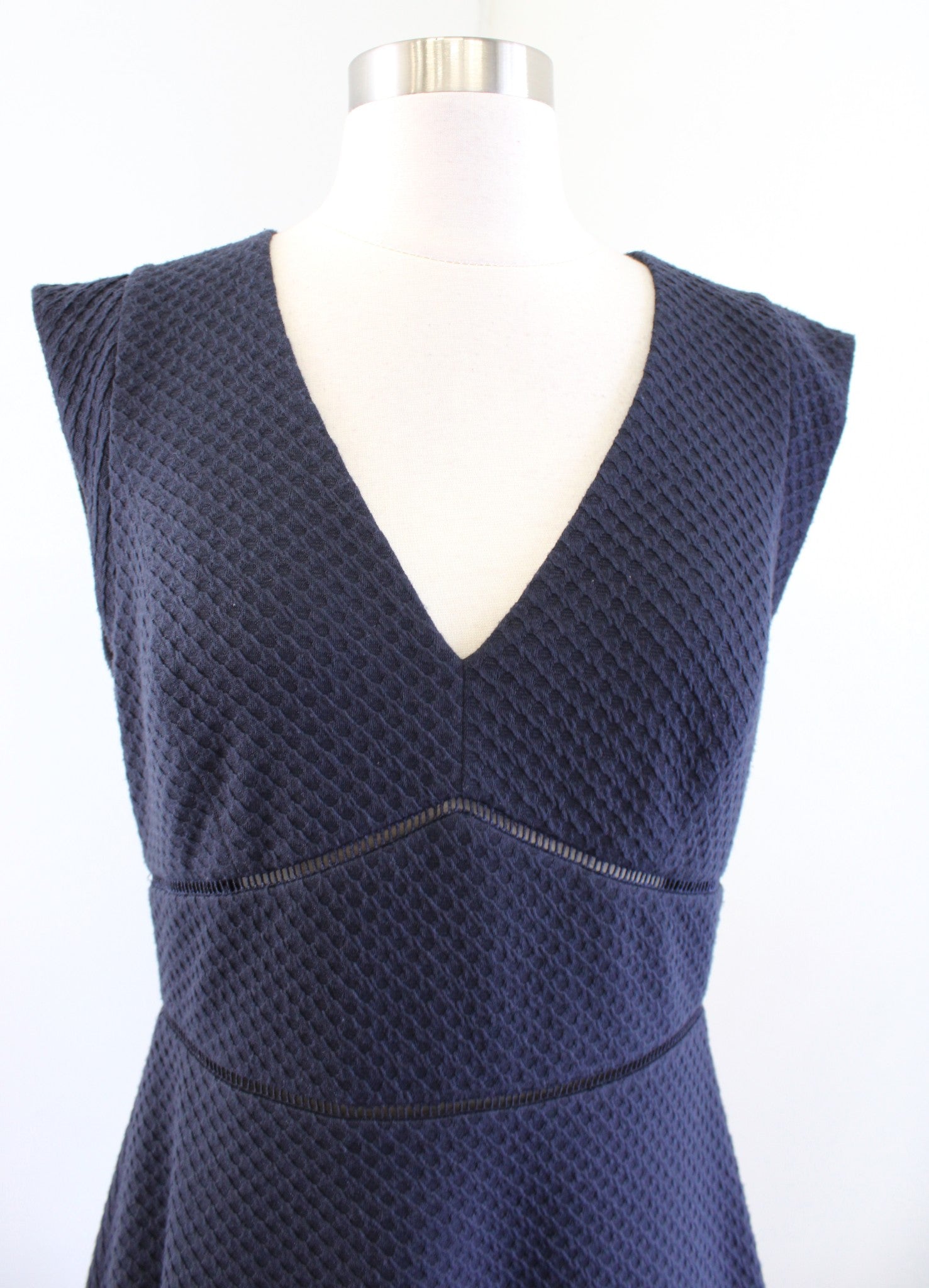Rebecca Taylor Taylor Dress Navy Blue Textured Knit A Line Eyelet Cutout Size 6