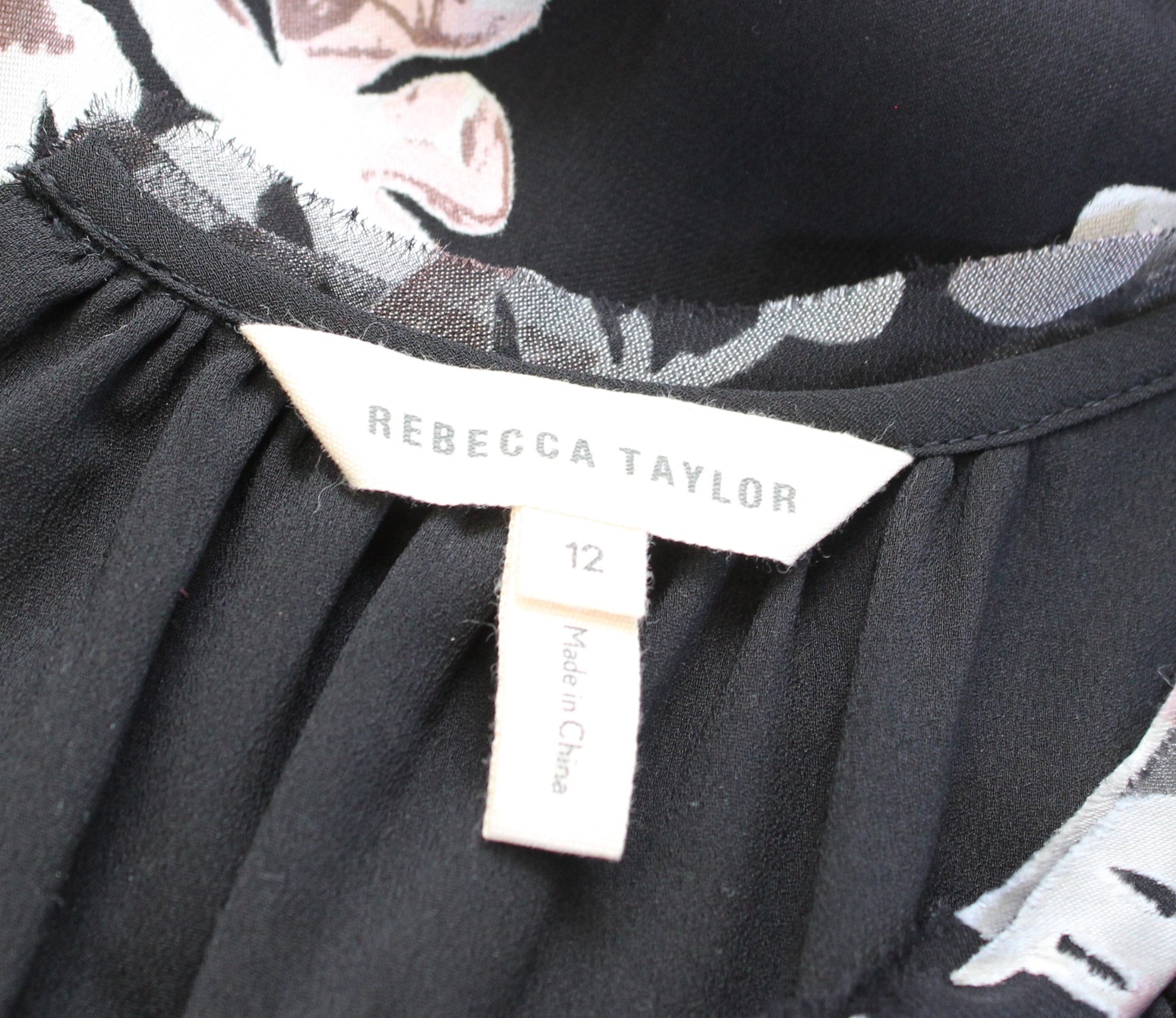 Rebecca Taylor Womens Black Burnout Floral Cap Sleeve Top Blouse Size 12