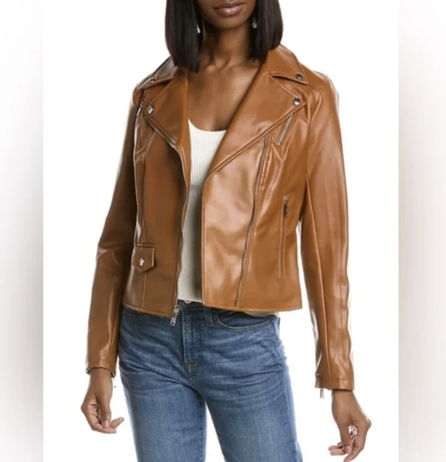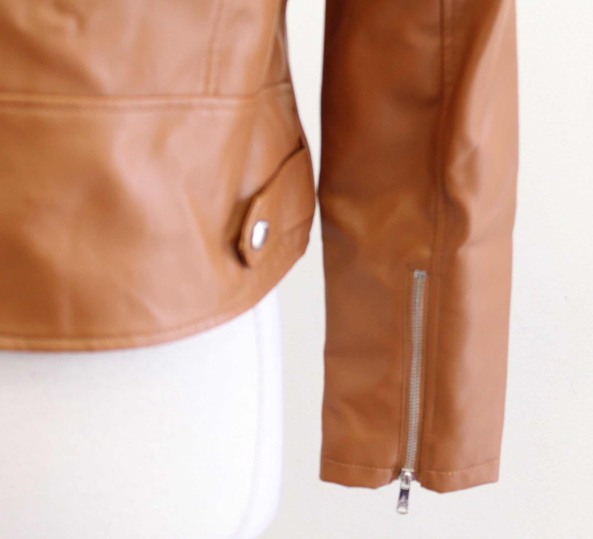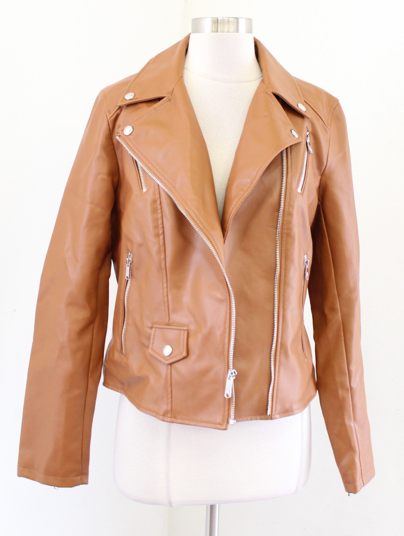 Sam Edelman Caramel Brown Faux Leather Vegan Moto Jacket Size M Zip Front