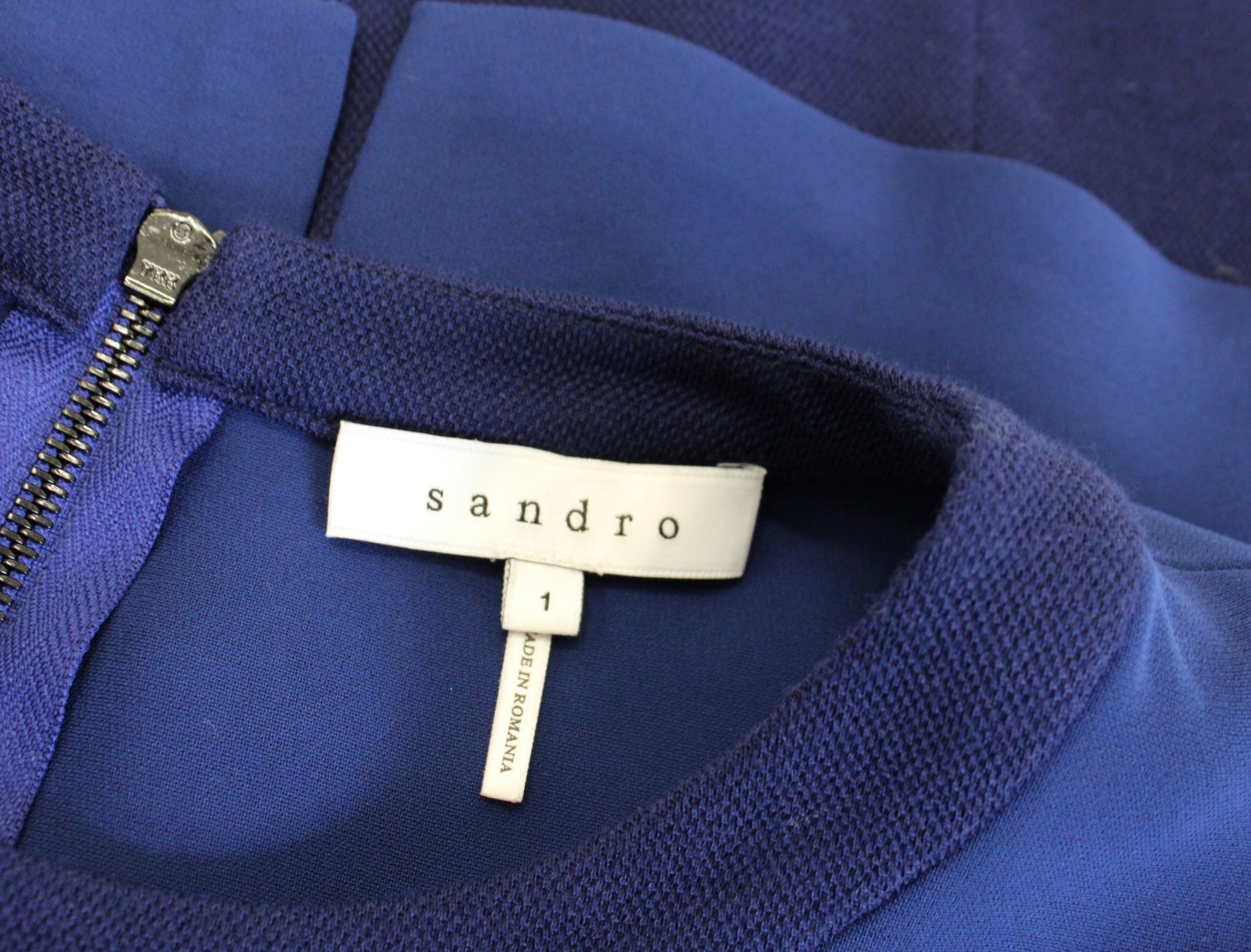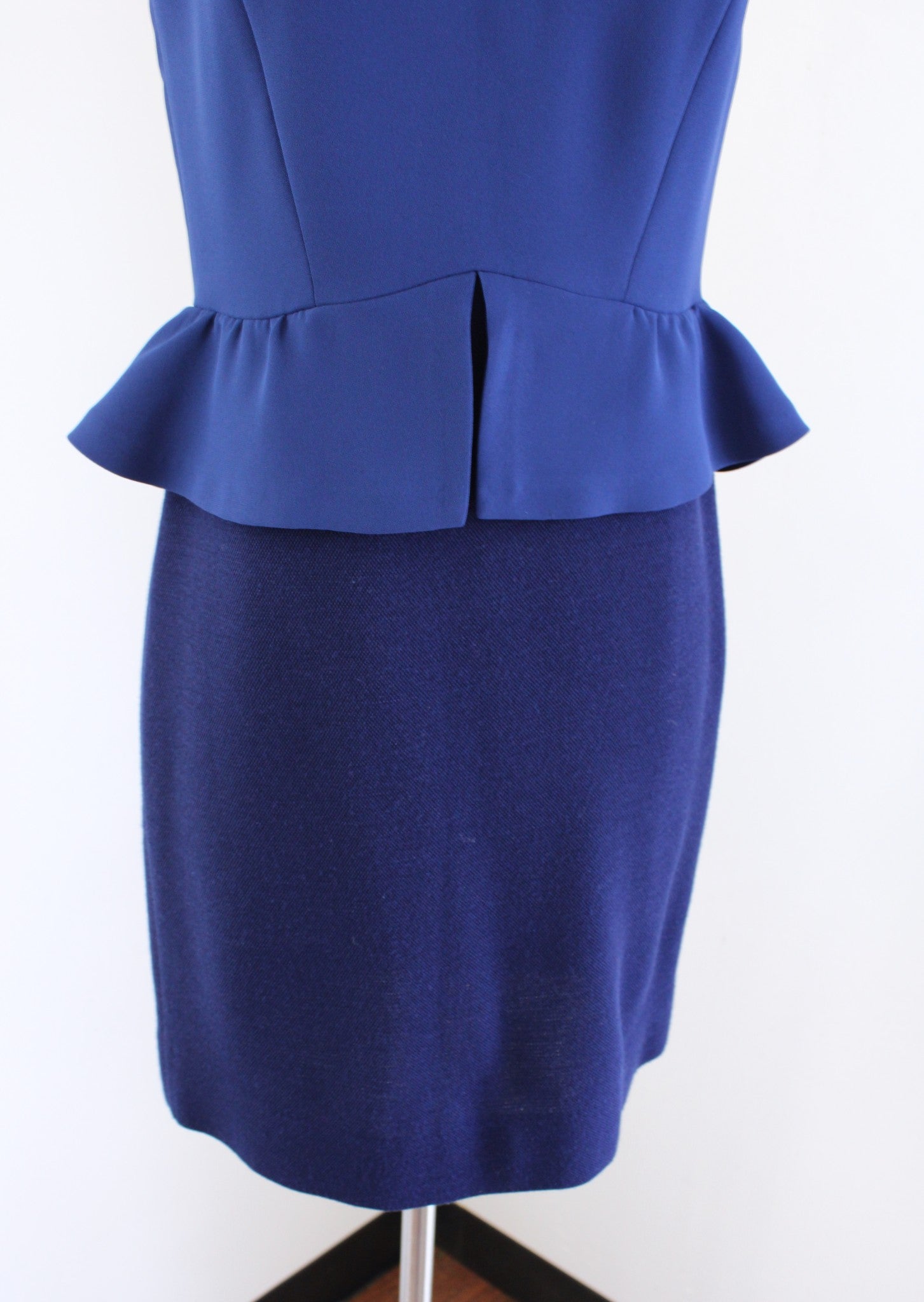 Sandro Navy Blue Two Tone Sleeveless Peplum Sheath Dress Size 1 Wool Knit