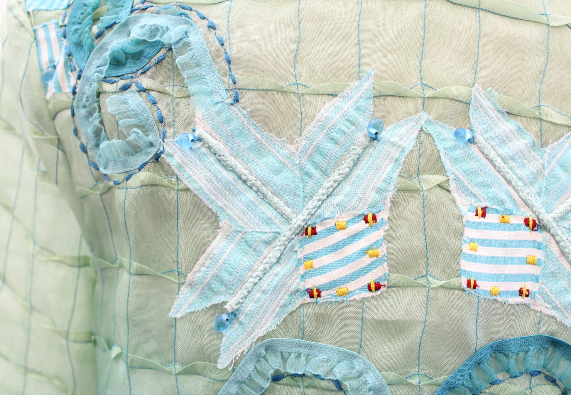 Sandy Sandy Starkman Green Blue Ombre Patchwork Textured Silk Jacket Size S Boho
