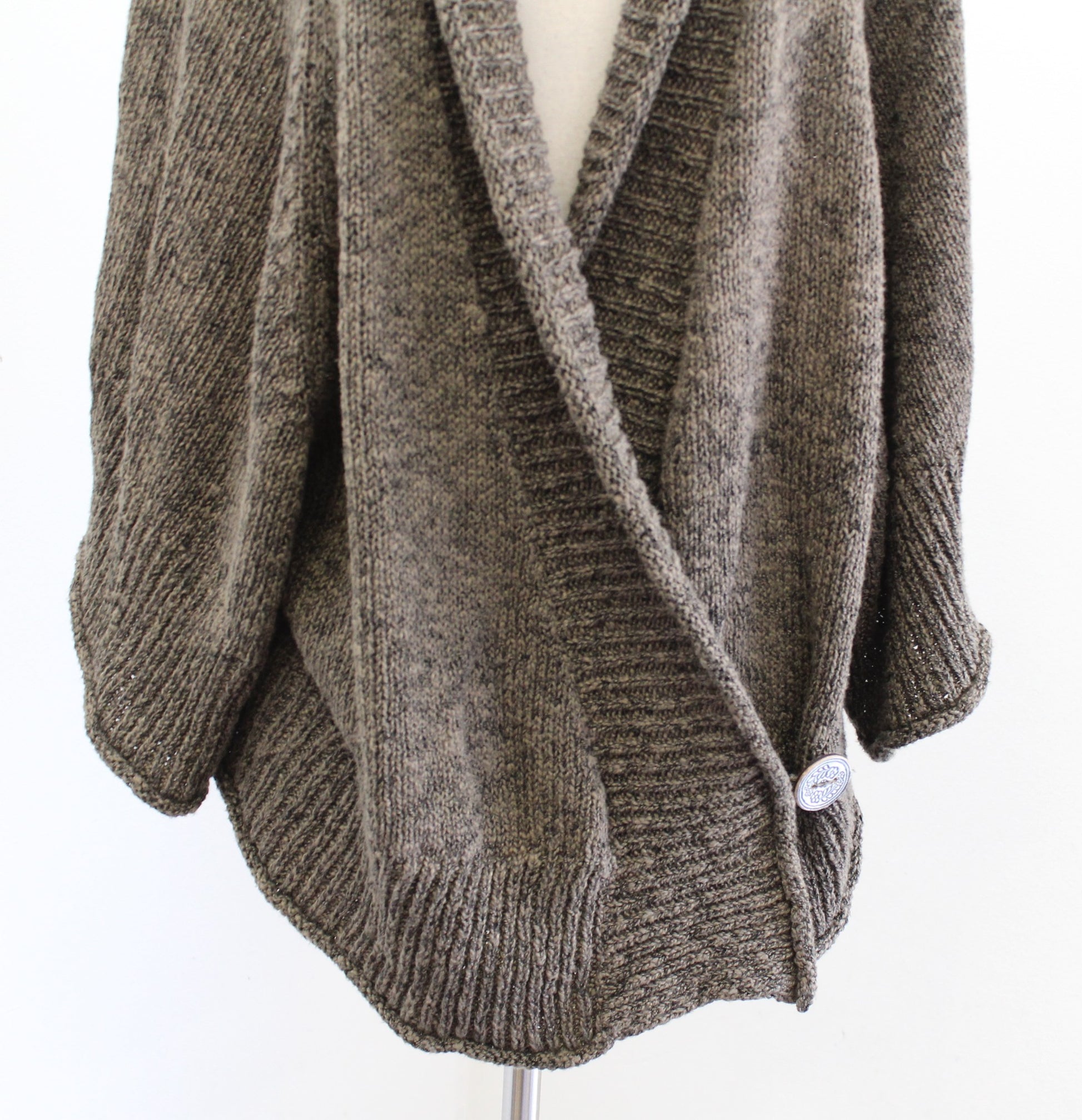 Soft Surroundings Green / Brown Poncho Wrap Front Style Cardigan Sweater S / M