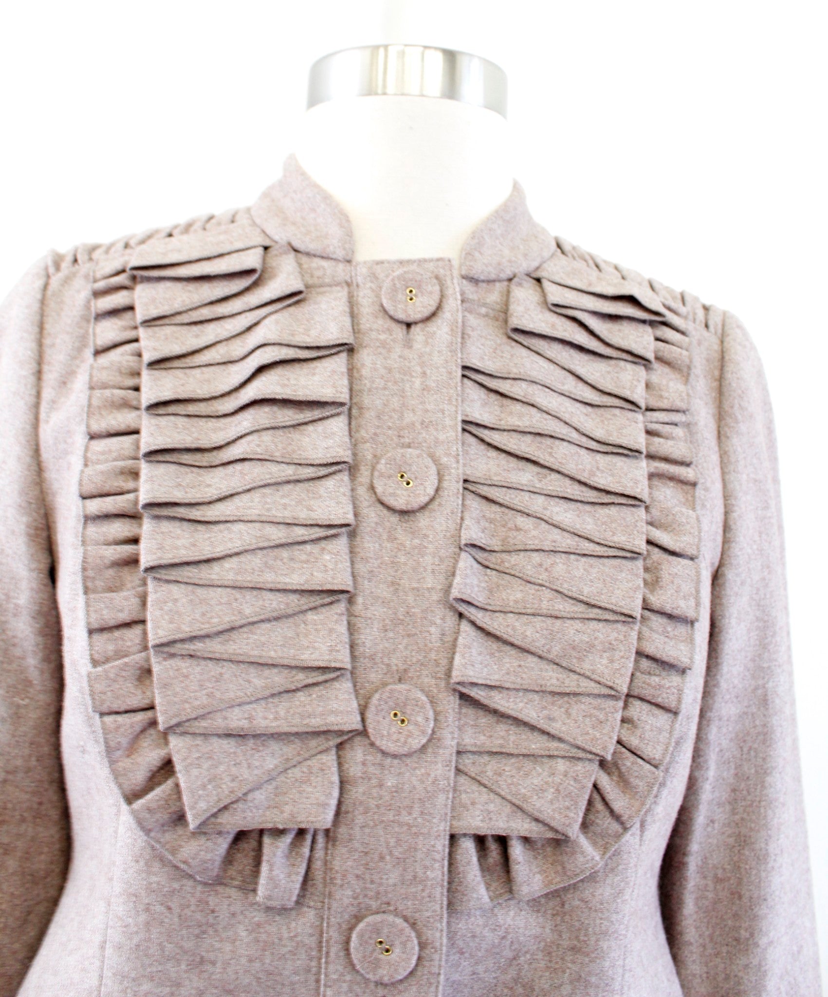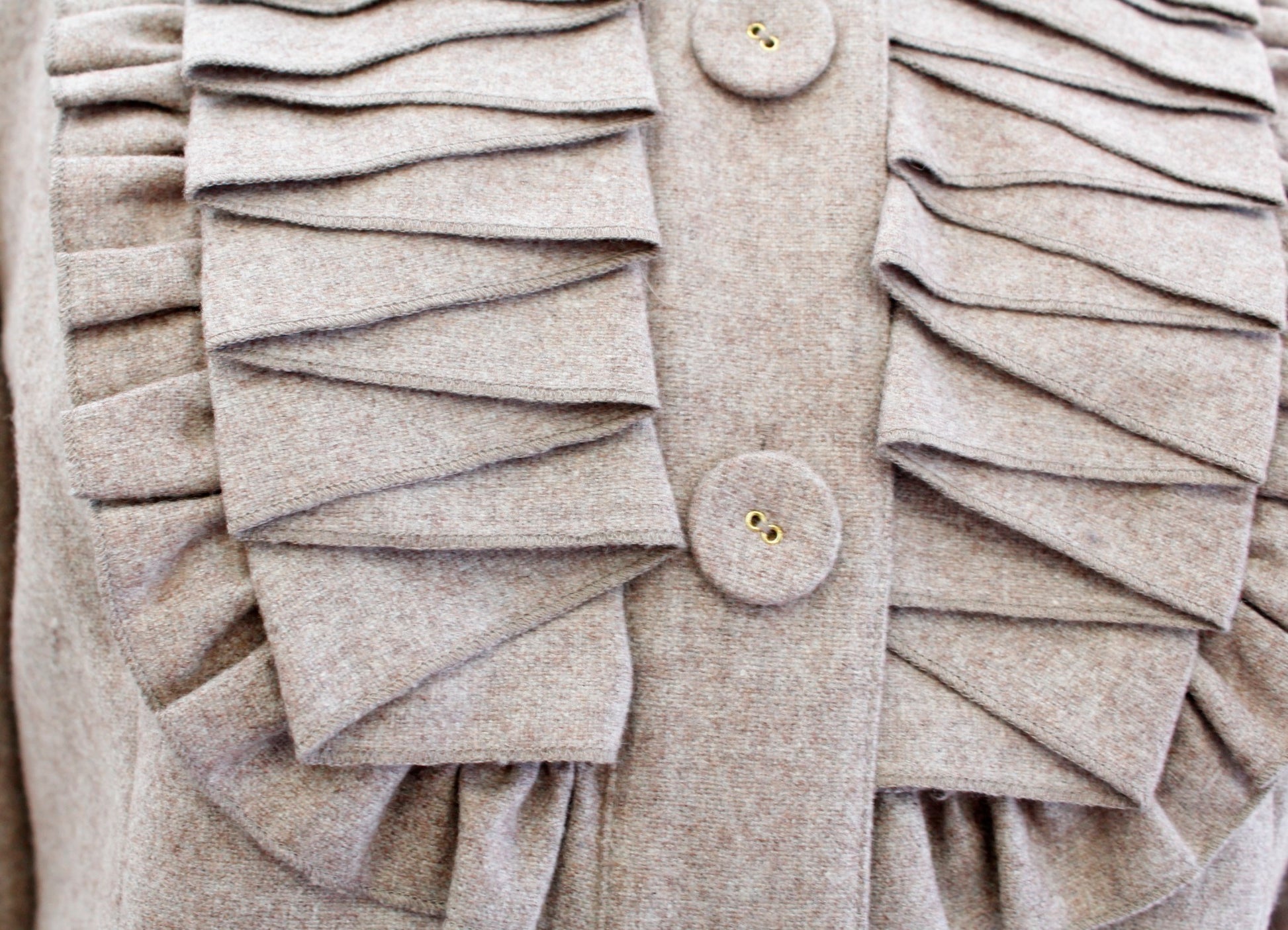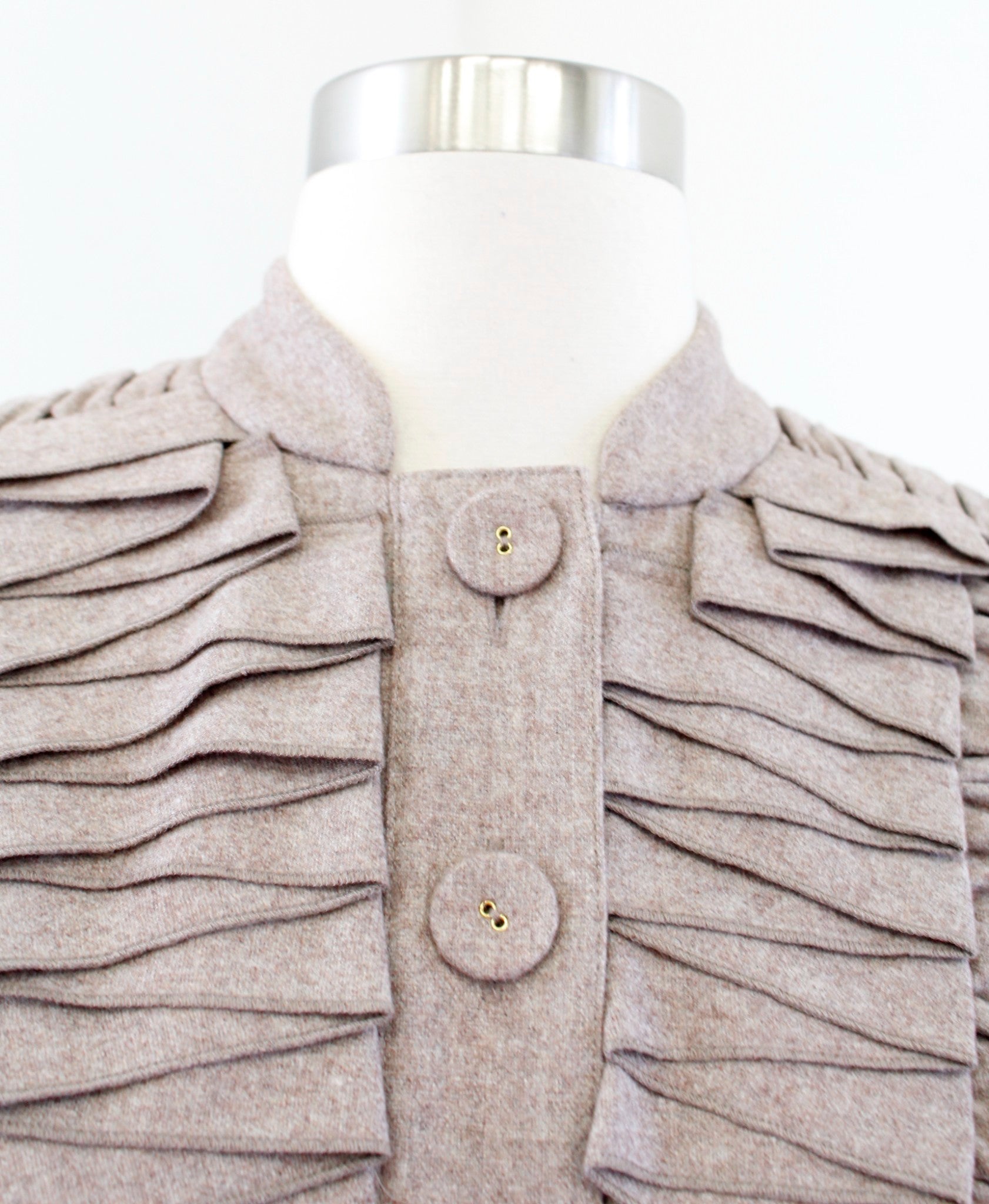 Tabitha Anthropologie As You Please Ruffle Pleated Cropped Wool Jacket Sz 0 Tan