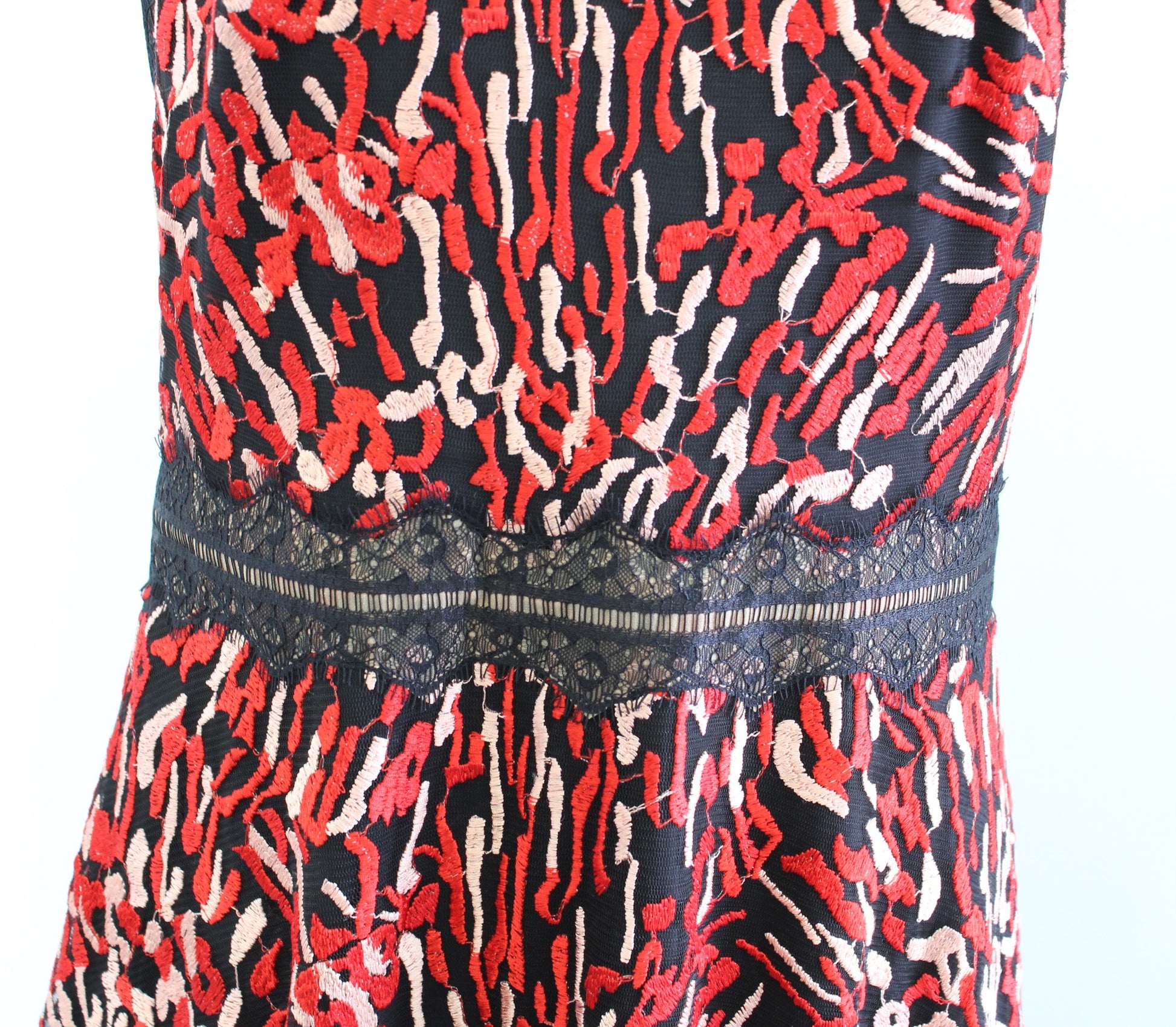 Tadashi Shoji Ariel Embroidered Lace Fit and Flare Evening Cocktail Dress Red 10